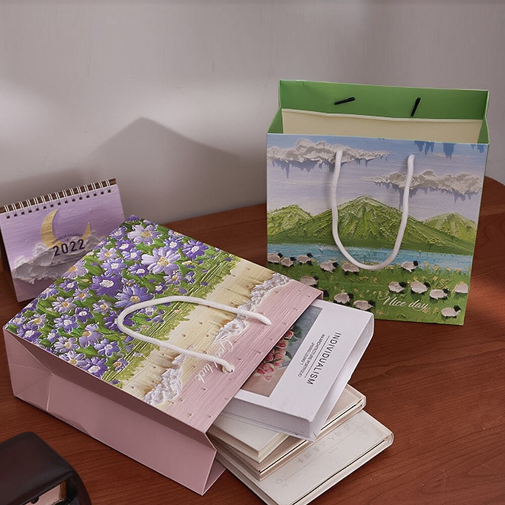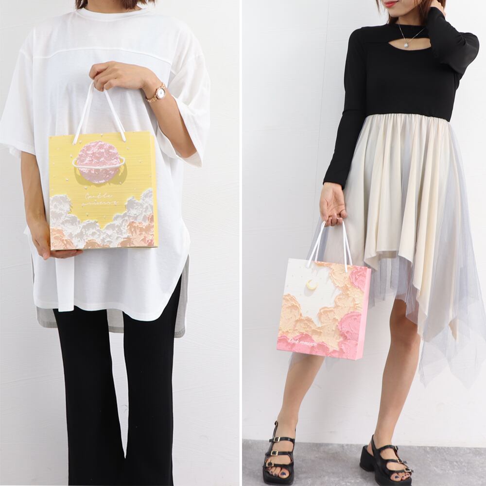 紙バック 縦型 おしゃれ 手提げ袋 雑貨 小物 ラッピング ペーパーバッグ 梱包 イベント 引き出物袋 韓国 クリスマスプレゼント ギフト 誕生日 お土産袋 贈り物 紙バッグ高さ24.5センチ・幅22センチ・奥行10センチの縦型ギフトバックプレゼントや小さいグッズを持運びするのに最適な大きさ5枚それぞれ異なるデザインと色で、送られた相手にきっと喜ばれるお菓子や小物などちょっとした贈り物や、バレンタイン、誕生日、クリスマス、ハロウィン、父の日、母の日などのちょっとした贈り物の際に手元にあると役立つ素材:ペーパー+ポリエステルカラー:5枚セット(ピンク/薄ピンク/ラベンダー/グリーン/イエロー)サイズ:高さ:約24.5cm 幅:約22cm 奥行:約10cm裏地:なし内ポケット:なし生産国:中国※すべて平置きサイズです(採寸方法違いより、多少の誤差がございますので、ご了承ください)。※海外輸入品のため、商品の細部仕様は多少異なる場合がございます。予めご了承の上、ご注文お願い致します。