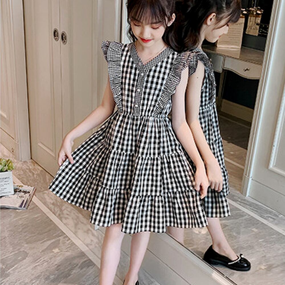キッズ 可愛い ミニワンピ 韓国風 無袖ワンピース 膝上丈 小学生 女の子 肩出し ガールズ 子供服ノースリーブワンピ フリルワンピース 発表会 チェック柄肩フリルデザインが可愛いキッズ用ワンピース。胸元のパール飾りボタンもさりげないポイント!ノースリーブ仕様なのでそのまま1枚で着てももちろん、カーデなどの羽織りとのレイヤードコーデも楽しめる。素材:ポリエステル70%+綿30%カラー:ブラックサイズ:120/130/140/150/160※詳細は下記の「サイズ」を必ずご参考にしてご購入ください。[120]総丈:約62cm 肩幅:約28cm 身幅:約33cm 胸囲:約66cm ウエスト:約50-58cm(ゴム仕様)[130]総丈:約68cm 肩幅:約29cm 身幅:約35cm 胸囲:約70cm ウエスト:約52-60cm(ゴム仕様)[140]総丈:約72cm 肩幅:約30cm 身幅:約37cm 胸囲:約74cm ウエスト:約54-62cm(ゴム仕様)[150]総丈:約76cm 肩幅:約31cm 身幅:約39cm 胸囲:約78cm ウエスト:約56-64cm(ゴム仕様)[160]総丈:約80cm 肩幅:約33cm 身幅:約42cm 胸囲:約84cm ウエスト:約60-68cm(ゴム仕様)裏地:なし伸縮性:なし透け感:なし生産国:中国※すべて平置きサイズです(採寸方法違いより、多少の誤差がございますので、ご了承ください)。※海外輸入品のため、商品の細部仕様は多少異なる場合がございます。予めご了承の上、ご注文お願い致します。