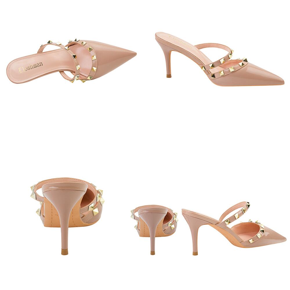 ミュールサンダル リベット ヒールサンダル ポインテッドトゥ 美脚結婚式 靴 パーティー 大人可愛いシューズ エレガントキャバパンプス上品 バイカラーパンプス ハイヒールサンダルピラミッドスタッズデザインが人目を惹いてしまうピンヒールパンプスリベットが装飾されて思わず人目を引いてしまう履くだけで足元が華やかになり、結婚式やパーティーなどに最適甲素材:合成皮革底素材:合成底カラー:ブラック/ピンクベージュ/アイボリー/イエローグリーンサイズ:22.0cm(220(1.5))/22.5cm(225(1.5))/23.0cm(230(1.5))/23.5cm(235(1.5))/24.0cm(240(1.5))/24.5cm(245(1.5))(カッコ内は靴底表記となります)[22.0]長さ:約22.0cm 幅:約7.0cm ヒール:約7cm[22.5]長さ:約22.5cm 幅:約7.2cm ヒール:約7cm[23.0]長さ:約23.0cm 幅:約7.4cm ヒール:約7cm[23.5]長さ:約23.5cm 幅:約7.6cm ヒール:約7cm[24.0]長さ:約24.0cm 幅:約7.8cm ヒール:約7cm[24.5]長さ:約24.5cm 幅:約8.0cm ヒール:約7cm重さ(両足):約525g-575g生産国:中国※すべて平置きサイズです(採寸方法違いより、多少の誤差がございますので、ご了承ください)。※海外輸入品のため、商品の細部仕様は多少異なる場合がございます。予めご了承の上、ご注文お願い致します。