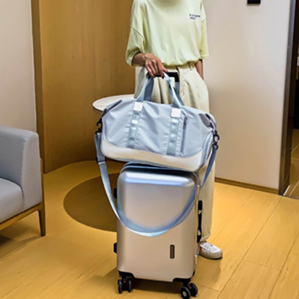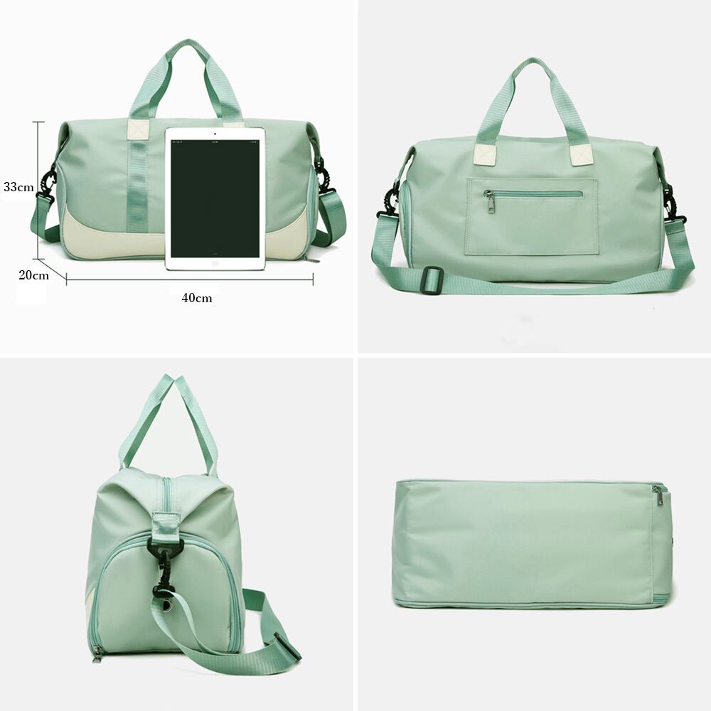 キャリーオン 旅行バッグ ジム スポーツバッグ レディース 軽い トラベルバッグ1泊 折りたたみ 肩掛け 修学旅行バッグ男女兼用旅行カバン ゴルフbag防災用 機内持ち込みバッグキャンプやアウトドア、小旅行やジム通いにもご使用頂ける使い勝手が良いバッグ軽量設計で収納力も抜群、また、素材はナイロンで雨もはじくため汚れにくいキャリーケースに取付可能、機内持ち込み出来るサイズで移動も楽ちん素材:ナイロン+ポリエステルカラー:ブラック/ブルーグレー/ダスティピンク/ペールパープル/薄ピンク/スカイブルー/ミントグリーン/チリアンパープルサイズ:高さ:約33cm 底横幅:約40cm マチ:約20cm 持ち手:約39cm(調節不可、取り外し不可) ショルダー:約65-118cm(調節可、取り外し可)重さ:約451g裏地:あり内ポケット:あり生産国:中国※すべて平置きサイズです(採寸方法違いより、多少の誤差がございますので、ご了承ください)。※海外輸入品のため、商品の細部仕様は多少異なる場合がございます。予めご了承の上、ご注文お願い致します。
