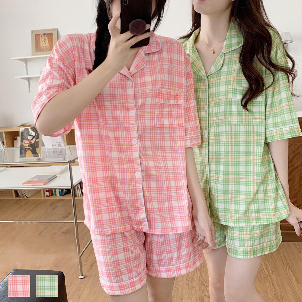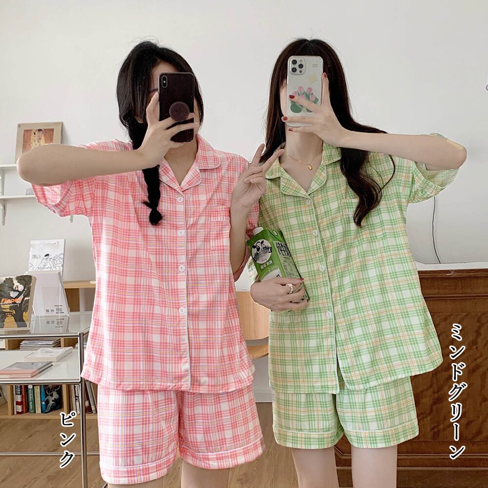 【日本倉庫即納】 パジャマ レディース 夏チェック柄部屋着