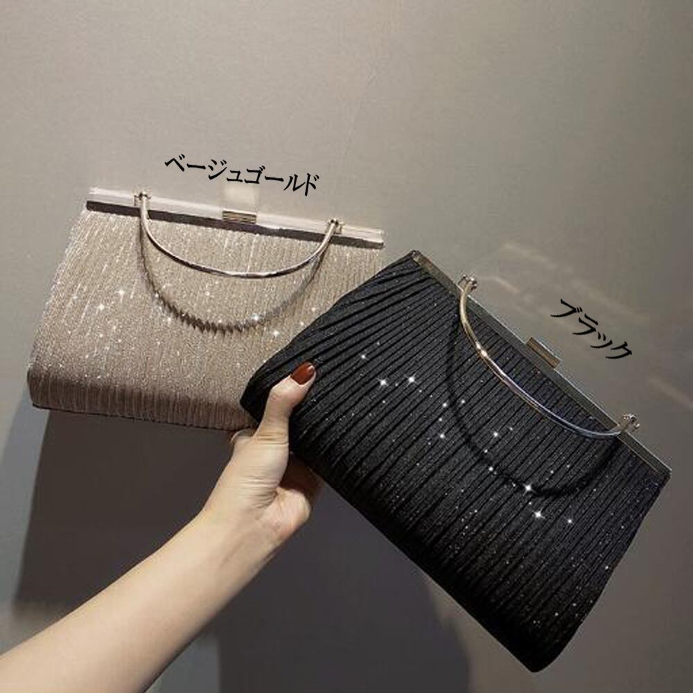 おしゃれ サテンプリーツ ハンドバッグ キラキラ ミニチェーンバッグ 斜めがけ ショルダーバッグ 小さめ鞄 フォーマルキャババッグ 上品 かばん披露宴二次会 お呼ばれバッグ 黒華やかなラメ生地にプリーツ加工を施し、上品さをプラスした3wayがま口パーティーバッグですゴールド金具のハンドルで高級感が溢れます取り外し可能なチェーン付きでショルダーバッグとして使っていただけます結婚式、発表会や謝恩会など多様なシーンのコーディネートに使えます素材:ポリエステル+合金カラー:ブラック/ベージュゴールドサイズ:高さ:約17cm 底横幅:約25cm 持ち手:約24cm(調節不可、取り外し不可) ショルダー:約96cm(調節不可、取り外し可)重さ:約300g裏地:あり内ポケット:あり生産国:中国※すべて平置きサイズです(採寸方法違いより、多少の誤差がございますので、ご了承ください)。※海外輸入品のため、商品の細部仕様は多少異なる場合がございます。予めご了承の上、ご注文お願い致します。