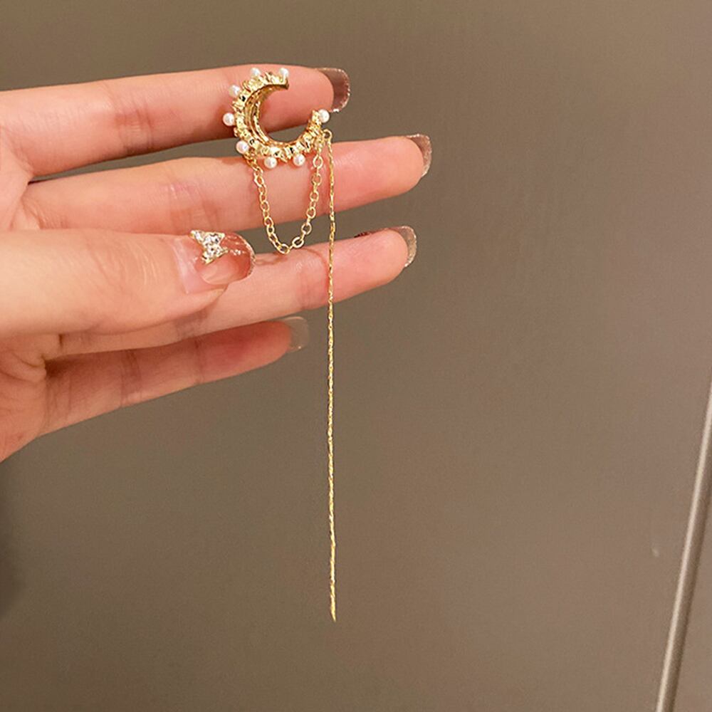 ウェアリング チェーンイヤーカフ 韓国 おしゃれ 結婚式 プチプラ アクセサリー 耳飾り フェイクパール キラキラ輝くパーティ人気可愛い プレゼント 女子会 ラインストーン華奢耳の軟骨部分を挟むように引っ掛けるキラキラ輝く片耳用のイヤーカフ小ぶりで可愛いフェイクパールとラインストーンを合わせた上品なイヤーカフにロングチェーンが映えるデザインで存在感のあるシルエットで耳元を彩るパーティや結婚式にもぴったりな女性らしいデザイン、プレゼント・クリスマスプレゼントにもオススメ♪素材:フェイクパール+ラインストーン+合金カラー:シルバー/ゴールドチェーンの長さ:約10cm生産国:中国※包装に関しての注意点:こちらの商品は激 安で販売しているため、化粧箱は付いていませんが、商品に傷付かないよう簡易包装で発送とさせていただきます。※海外輸入品のため、商品の細部仕様は多少異なる場合がございます。予めご了承の上、ご注文お願い致します。