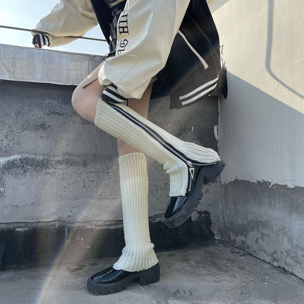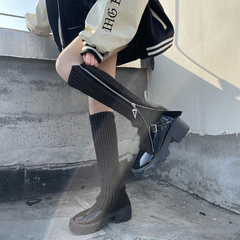 【日本倉庫即納】 ニットレッグウォーマー ジップつき韓国風