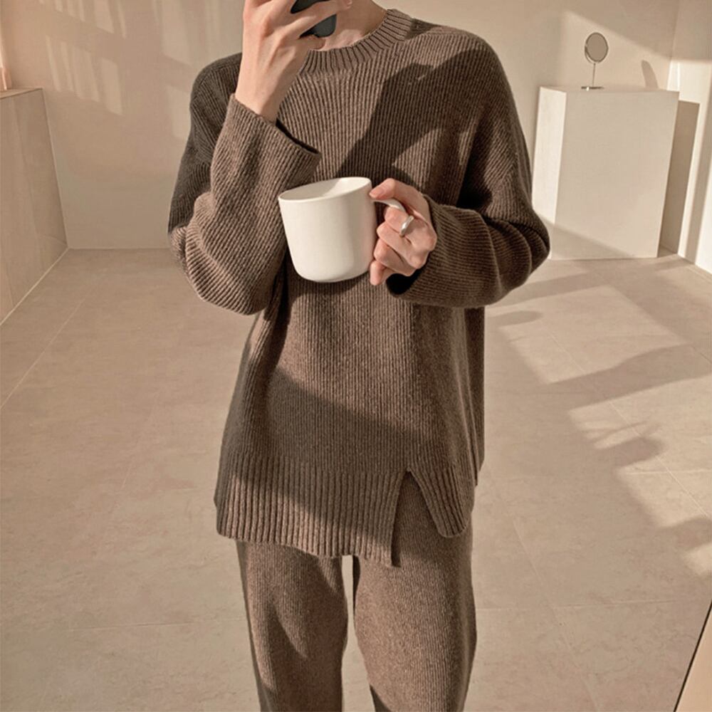 【日本倉庫即納】 セットアップニット 秋冬 スリット 韓国