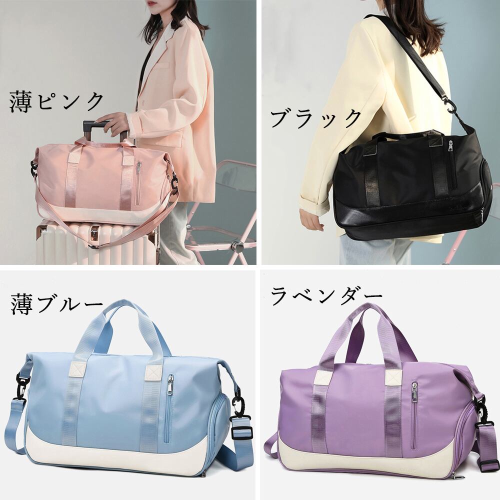 旅行バッグ 3WAY ボストンバッグ 男女兼用 シューズ収納 斜めがけバッグ 肩掛け 鞄 スポーツバッグ ヨガ お出かけ旅行バッグ 軽量 スマホ収納 A4 キャリーオンバッグシューズ、スマホ、小物などを分けて収納できるボストンバッグバッグ背面の通しポケットで、スーツケースのスライドハンドルに取り付け可能、トラベル用のサブバッグに最適ショルダー紐付きなので、手持ちにしたり、肩に掛けたり、荷物が重くなっても安心素材:ナイロン+ポリエステルカラー:ブラック/薄ブルー/薄ピンク/ラベンダーサイズ:高さ:約33cm 底横幅:約40cm マチ:約20cm 持ち手高さ:約18cm(調節不可、取り外し不可) ショルダー:約65-118cm(調節可、取り外し可)重さ:約451g裏地:あり内ポケット:あり生産国:中国※すべて平置きサイズです(採寸方法違いより、多少の誤差がございますので、ご了承ください)。※海外輸入品のため、商品の細部仕様は多少異なる場合がございます。予めご了承の上、ご注文お願い致します。