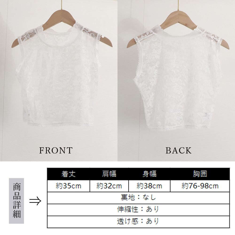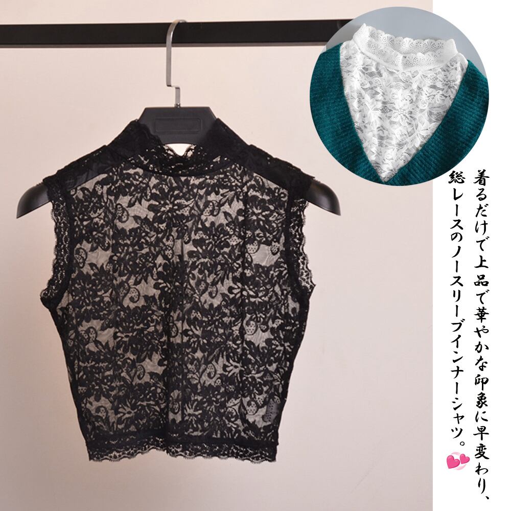 スタンドカラー 総レースブラウス フリルネック 重ね着レースシャツ きれいめ つけ襟フェミニンシャツつけ衿 つけえり白黒可愛いレースシャツ ハイネック 立ち襟 レイヤード つけ襟着るだけで上品で華やかな印象に早変わり、総レースのノースリーブインナーシャツ首元からチラ見せすることで甘くなり過ぎずに大人女子にも取り入れやすい着丈が短いのでつけ襟のようにもお使いいただける胸元が気になる服や、シンプルな服を手軽にスタイルチェンジしたい、レイヤード(重ね着)したいけど着膨れしたくない、等におすすめ素材:ポリエステル100%カラー:ブラック/ホワイトサイズ:ワンサイズ(L)着丈:約35cm 肩幅:約32cm 身幅:約38cm 胸囲:約76-98cm裏地:なし伸縮性:あり透け感:あり※デザイン上透け感がございますので、インナーの着用をお勧め致します生産国:中国※すべて平置きサイズです(採寸方法違いより、多少の誤差がございますので、ご了承ください)。※海外輸入品のため、商品の細部仕様は多少異なる場合がございます。予めご了承の上、ご注文お願い致します。