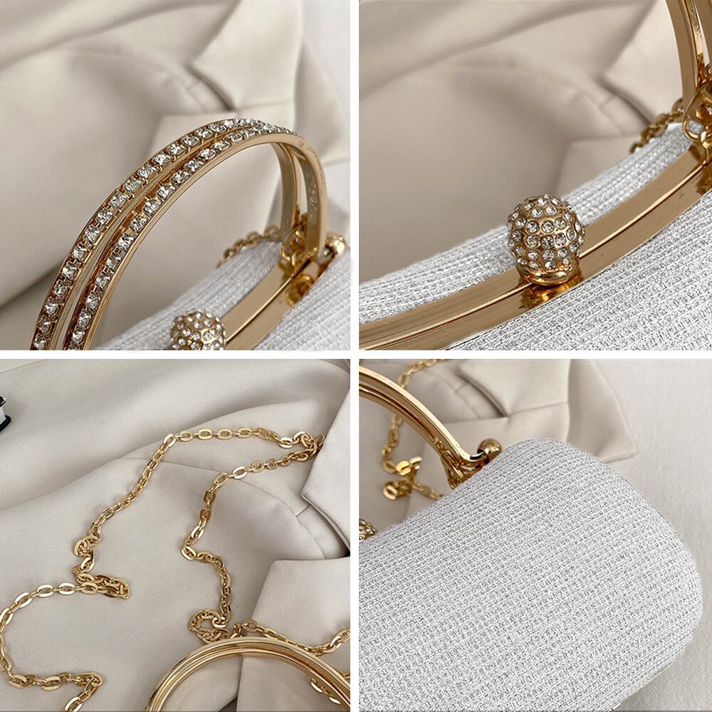 ウエディングバッグ がま口 エレガント お呼ばれバッグ 謝恩会演奏会チェーンバッグ ゴージャス 2wayフォーマルバッグかばん披露宴 女性 キャババッグ 上品 結婚式 ミニバッグ丸みを帯びたフォルムが女性らしいパーティーバッグ立体的なシルエットが大人かわいい上品なカラーなので派手すぎず、自然に華やかさを演出できるのが魅力付属のチェーンは取り外し可能でクラッチにもショルダーにも使える2WAY仕様結婚式の披露宴や二次会、パーティーや謝恩会などのフォーマルシーンにぴったりのアイテム素材:合成皮革+ポリエステル+合金カラー:ブラック/グレー/シャンパンゴールド/シルバーサイズ:高さ:約10cm 底横幅:約21cm マチ:約6cm 持ち手高さ:約8cm(調節不可、取り外し不可) ショルダー:約112cm(調節不可、取り外し可)重さ:約305g裏地:あり内ポケット:なし生産国:中国※すべて平置きサイズです(採寸方法違いより、多少の誤差がございますので、ご了承ください)。※海外輸入品のため、商品の細部仕様は多少異なる場合がございます。予めご了承の上、ご注文お願い致します。