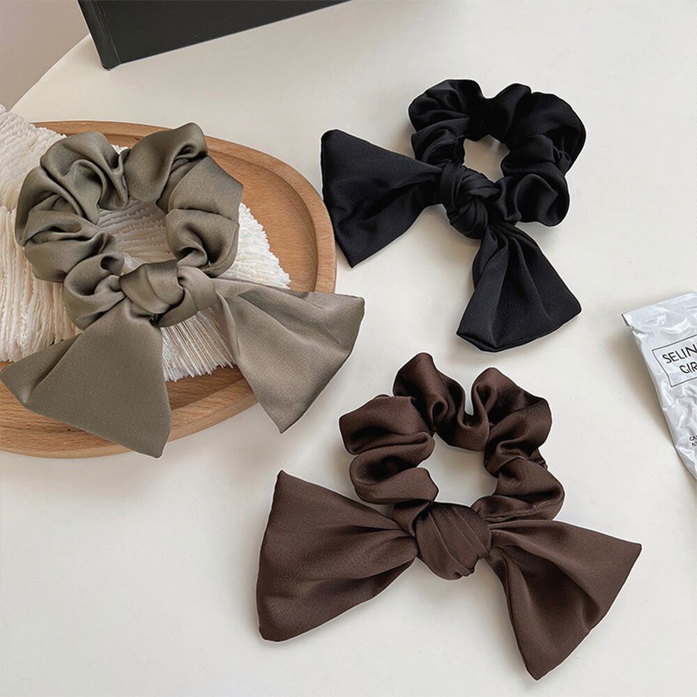 【日本倉庫即納】 蝶結びヘアゴム シュシュ サテン 3色