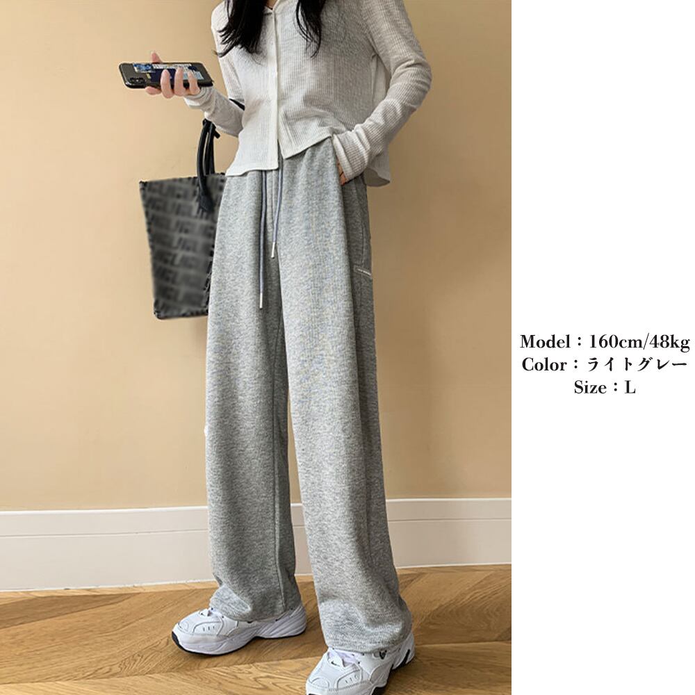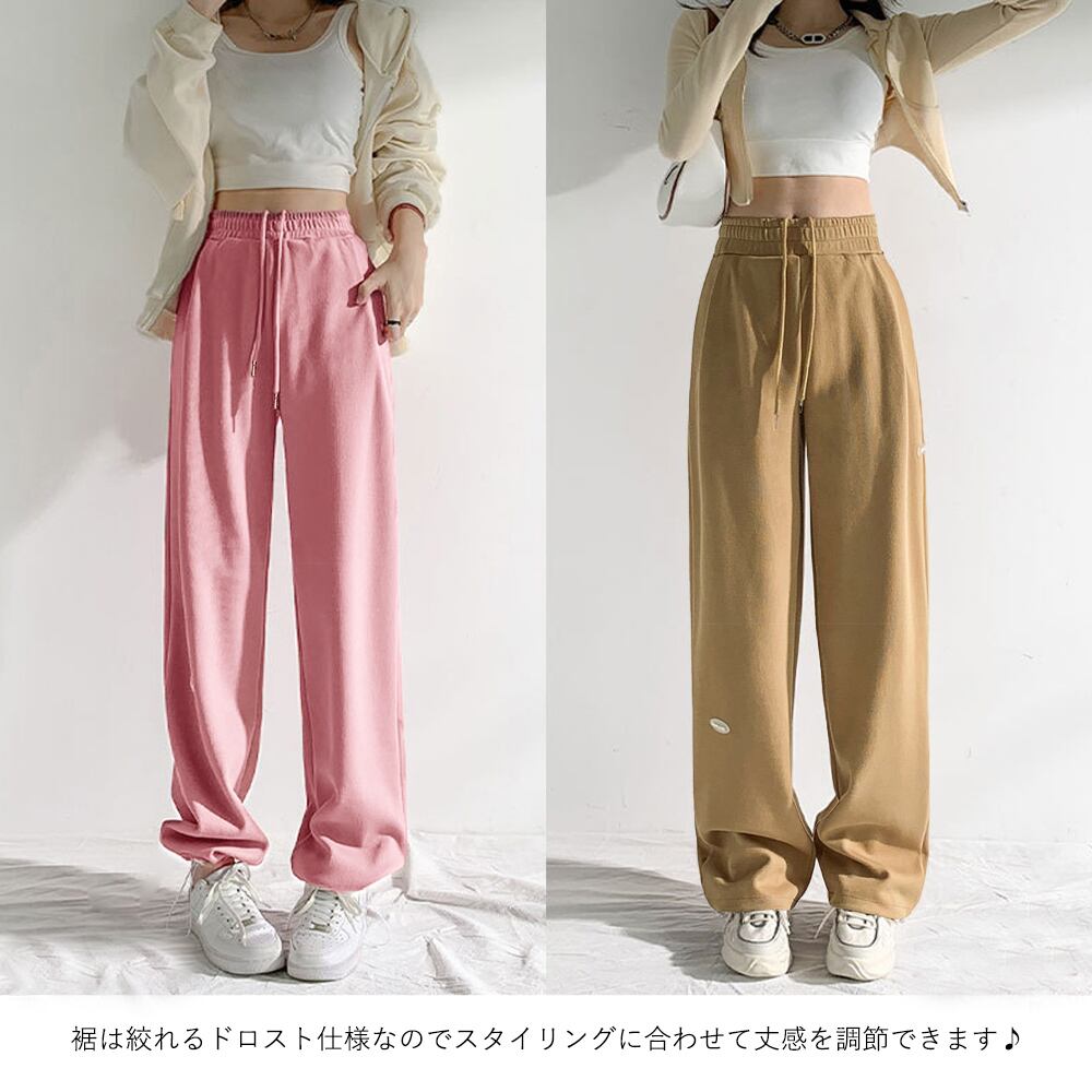 レディースボトムス ハイウエスト ストレートパンツ 体型カバー カジュアル おしゃれ ルームウェア スポーツ ダンス衣装リラックスパンツ春 新作イージーパンツ 脚長ズボン 部屋着スポーティーにもカジュアルコーデにもリラックスして穿けるスウェットパンツウエストゴム仕様、また紐で調節できるのでお好みに合わせてストレスフリーなはき心地裾のドロストデザインで、だぼっとしたシルエットからスッキリとしたシルエットにチェンジ穿くだけでこなれ感のあるスタイリングに仕上がる1枚素材:ポリエステル85%+綿15%カラー:ブラック/ホワイト/ライトグレー/ネイビー/キャメル/ピンクサイズ:M/L/XL[M]着丈:約96cm 股下:約64cm ウエスト(ゴム仕様):約58-84cm ヒップ:約96-116cm もも周り:約56-66cm[L]着丈:約97cm 股下:約65cm ウエスト(ゴム仕様):約60-86cm ヒップ:約98-118cm もも周り:約58-70cm[XL]着丈:約98cm 股下:約66cm ウエスト(ゴム仕様):約62-88cm ヒップ:約100-120cm もも周り:約60-74cm裏地:なし伸縮性:あり透け感:ホワイトのみややあり生産国:中国※すべて平置きサイズです(採寸方法違いより、多少の誤差がございますので、ご了承ください)。※海外輸入品のため、商品の細部仕様は多少異なる場合がございます。予めご了承の上、ご注文お願い致します。