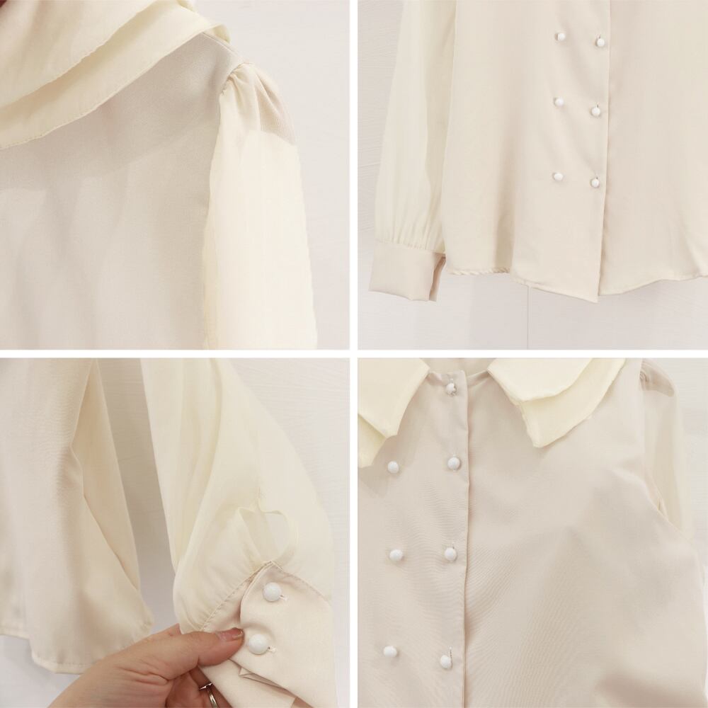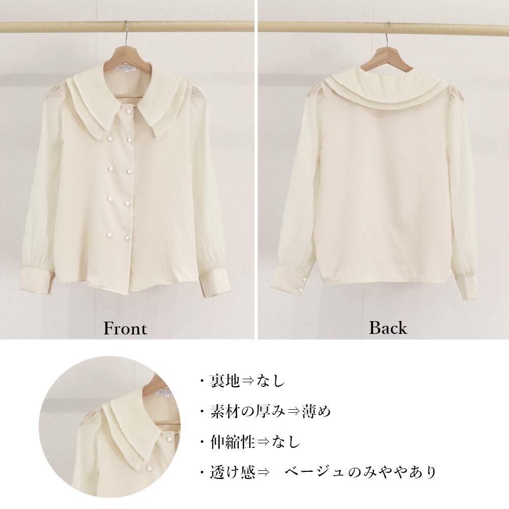 【日本倉庫即納】 ダブル襟 シフォンブラウスレディース長袖