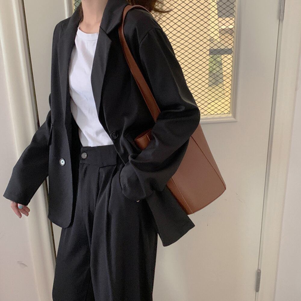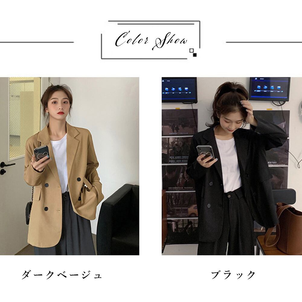 オシャレ 春アウター ベーシック スーツジャケット 長袖ライトアウター 着やせ カーデガン 軽アウター体型カバー通勤OL韓国風トップス無地 春夏羽織りゆったり オフィスカジュアルこれからの季節にぴったりで軽い着心地の長袖テーラードジャケット2列のボタンが並ぶデザインは、洗練されたシルエットでこなれた大人顔に。ジーンズやスニーカーと合わせてカジュアルなスタイルに、ワイドパンツやスカートなどと合わせることで、より上品できれいめな印象に素材:ポリエステル85%+綿15%カラー:ブラック/ダークベージュサイズ:L/XL[L]着丈:約64cm 肩幅:約44cm 袖丈:約54cm ゆき:約76cm 身幅:約55cm 胸囲:約110cm[XL]着丈:約67cm 肩幅:約47cm 袖丈:約55cm ゆき:約78.5cm 身幅:約59cm 胸囲:約118cm裏地:なし伸縮性:なし透け感:なし生産国:中国※すべて平置きサイズです(採寸方法違いより、多少の誤差がございますので、ご了承ください)。※海外輸入品のため、商品の細部仕様は多少異なる場合がございます。予めご了承の上、ご注文お願い致します。