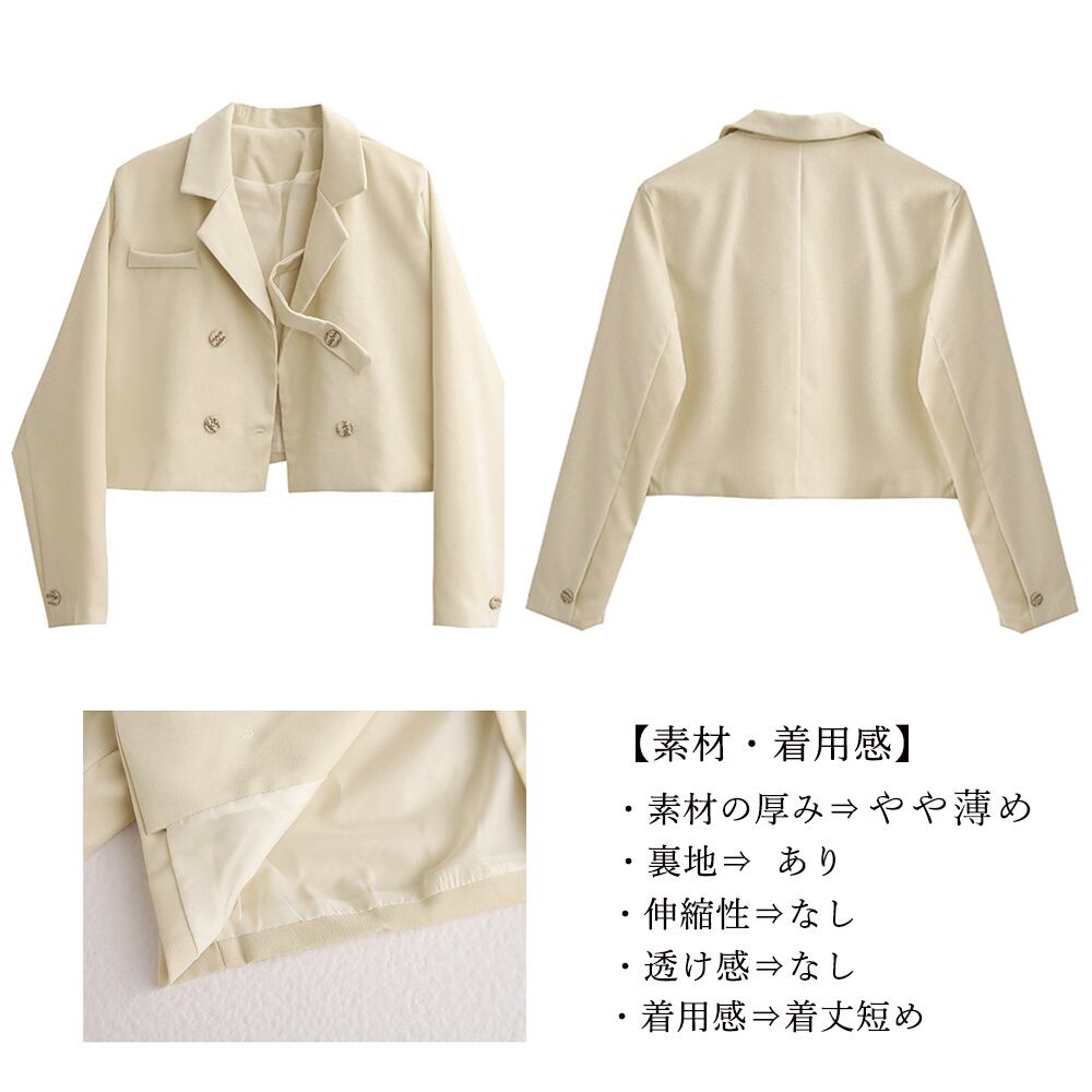レディース クロップド丈 ライトアウター オフィスカジュアル 襟付きトップス 羽織り おしゃれ 通勤通学スーツジャケット着やせジャケット黒 ゆったり アウター 長袖 着やせ20代トレンドムード溢れるクロップド丈テーラードジャケットショート丈なので、すっきりバランスよく、よりスタイリッシュな印象にスタイリング次第でカジュアルにもきれいめにもマッチする使い勝手の良さはピカイチ本体素材:ポリエステル85%+綿15%裏地素材:ポリエステル100%カラー:ブラック/ライトベージュサイズ:M/L[M]着丈:約41cm 肩幅:約37cm 袖丈:約57cm ゆき:約75.5cm 身幅:約48cm 胸囲:約96cm[L]着丈:約43cm 肩幅:約38cm 袖丈:約60cm ゆき:約79cm 身幅:約50cm 胸囲:約100cm裏地:あり伸縮性:なし透け感:なし生産国:中国※すべて平置きサイズです(採寸方法違いより、多少の誤差がございますので、ご了承ください)。※海外輸入品のため、商品の細部仕様は多少異なる場合がございます。予めご了承の上、ご注文お願い致します。