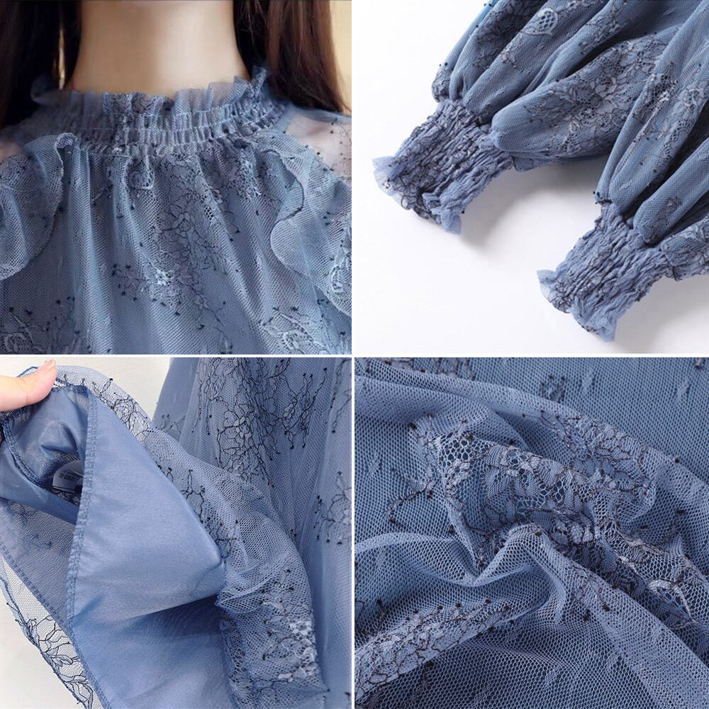 フリル フレアトップス 透け感 肌見せ 大人可愛い花柄ブラウス ハイネック ぽわん袖春夏長袖 薄手ブラウス 韓国おしゃれ上品 きれいめ春服 フラワーブラウス柄 シースルーチュール春らしい花柄刺しゅうデザイン&透け感で好印象、大人可愛いレーストップスが新登場!シアー素材との肌みせバランスもバッチリ!首周りはきちんと感の出るハイネックデザインが上品エレガントな印象に肩口からかぶせるように施されたフリルで二の腕周りを隠してさり気なく華奢見せカジュアルなスタイルからフォーマルなスタイルまで、様々なシーンで活躍する素材:ポリエステル100%カラー:アイボリー/くすみブルーサイズ:ワンサイズ(L)着丈:約60cm ゆき:約75cm 身幅:約60cm 胸囲:約120cm裏地:あり伸縮性:なし透け感:袖部分あり/身頃部分アイボリーのみややあり生産国:中国※すべて平置きサイズです(採寸方法違いより、多少の誤差がございますので、ご了承ください)。※海外輸入品のため、商品の細部仕様は多少異なる場合がございます。予めご了承の上、ご注文お願い致します。