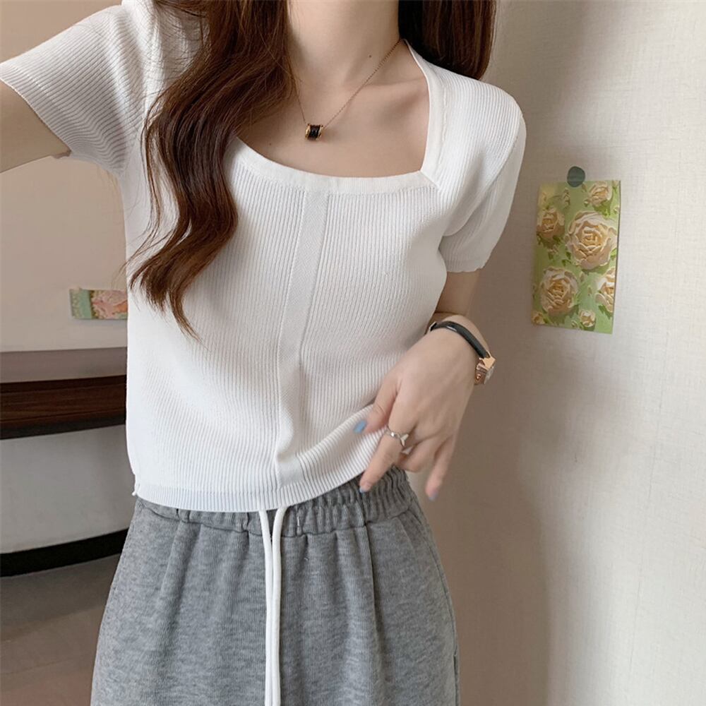 【日本倉庫即納】 半袖ニットトップス 夏 ショート丈 韓国