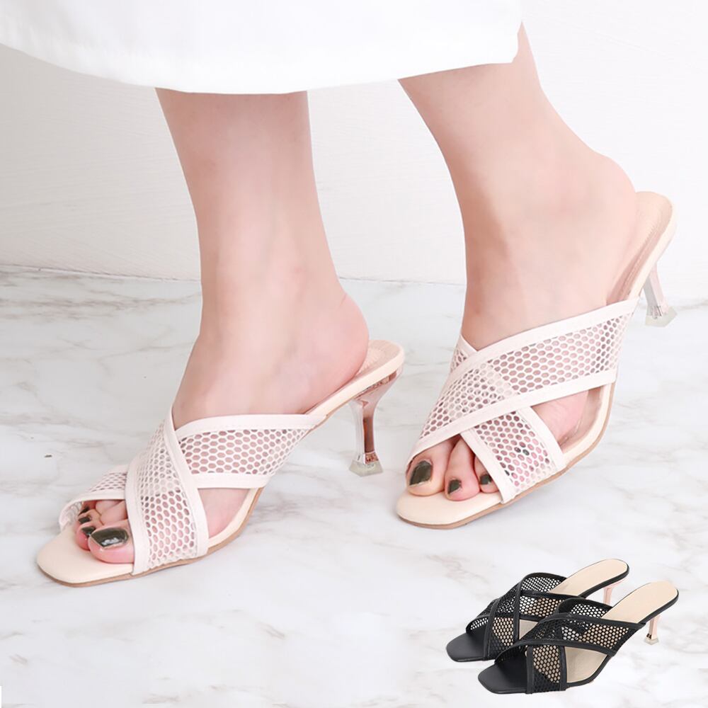 スクエアトゥ サマーサンダル 6cmヒール ミュール メッシュ靴 美脚 クロス 大人 シースルー レトロ シューズヒールサンダル 黒 おしゃれミュール 疲れない靴 新作涼しげなメッシュ素材を採用したヒールサンダル安定感のあるスクエアヒールで履き心地も抜群スカートやパンツ、ワンピースなど様々なアイテムと相性の良いアイテム甲素材:合成皮革+合成繊維底素材:合成底カラー:ブラック/ベージュサイズ:22.5cm(35)/23.0cm(36)/23.5cm(37)/24.0cm(38)/24.5cm(39)/25.0cm(40)(カッコ内は靴底表記となります)[22.5]長さ:約22.5cm 幅:約11.0cm ヒール:約6cm[23.0]長さ:約23.0cm 幅:約11.4cm ヒール:約6cm[23.5]長さ:約23.5cm 幅:約11.8cm ヒール:約6cm[24.0]長さ:約24.0cm 幅:約12.2cm ヒール:約6cm[24.5]長さ:約24.5cm 幅:約12.6cm ヒール:約6cm[25.0]長さ:約25.0cm 幅:約13.0cm ヒール:約6cm重さ(両足):約276g-336g生産国:中国※すべて平置きサイズです(採寸方法違いより、多少の誤差がございますので、ご了承ください)。※海外輸入品のため、商品の細部仕様は多少異なる場合がございます。予めご了承の上、ご注文お願い致します。