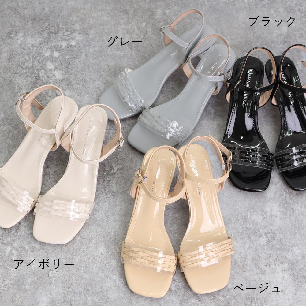 ヒールサンダル スクエアトゥ サマーサンダル オルチャン 歩きやすい 美脚大人 疲れにくいくつ オシャレシューズ 夏 黒太ヒールサンダル ストラップサンダル クリアサンダルシーズンムード高まるクリアヒールがポイントのスクエアトゥサンダル。アンクルストラップで足をしっかり固定できるので歩きやすい女性らしいやさしいカラー展開でこれからの季節に大活躍まちがいなし甲素材:合成皮革+PVC(ポリ塩化ビニル)底素材:合成底カラー:グレー/ブラック/ベージュ/アイボリーサイズ:22.5(225(1.5))cm/23.0(230(1.5))cm/23.5(235(1.5))cm/24.0(240(1.5))cm/24.5(245(1.5))cm(カッコ内は靴底表記となります)[22.5]長さ:約22.5cm 幅:約13.0cm ヒール:約6.2cm[23.0]長さ:約23.0cm 幅:約13.1cm ヒール:約6.2cm[23.5]長さ:約23.5cm 幅:約13.2cm ヒール:約6.2cm[24.0]長さ:約24.0cm 幅:約13.3cm ヒール:約6.2cm[24.5]長さ:約24.5cm 幅:約13.4cm ヒール:約6.2cm重さ(両足):約359g-382g生産国:中国※すべて平置きサイズです(採寸方法違いより、多少の誤差がございますので、ご了承ください)。※海外輸入品のため、商品の細部仕様は多少異なる場合がございます。予めご了承の上、ご注文お願い致します。