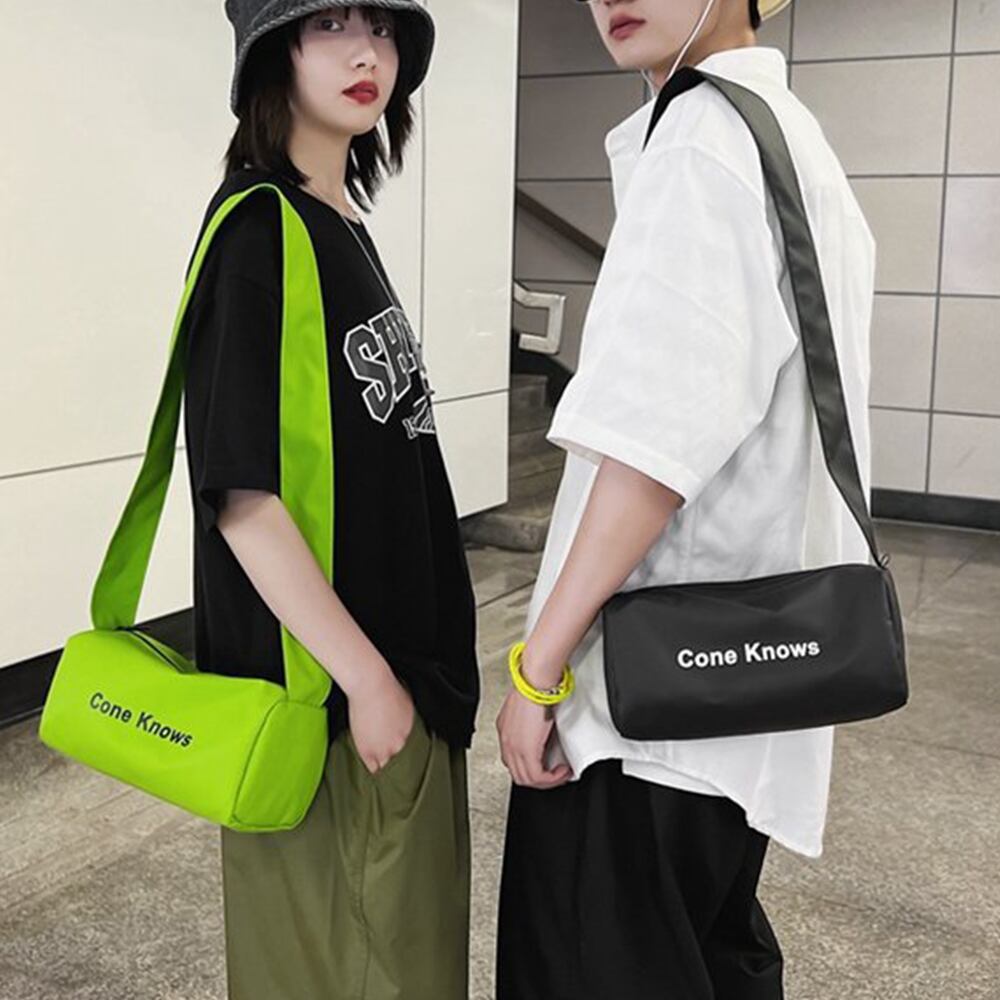 レディース 斜めがけバッグ メンズ コンパクトボディバッグ スポーツ ユニセックスメッセンジャーバッグ ロゴ円筒型カバン男女兼用かばん韓国 ミニ ドラムバッグ アウトドアバッグ黒ころんとしたシルエットが可愛い円筒型のショルダーバッグ太めのショルダーが安定感もあり、肩の負担もなく通学、スポーツ観戦、レジャー、アウトドアとお出かけの際に間違いなくお勧めのアイテムシンプルなデザインで男性・女性ともにお使いいただける素材:ナイロン+ポリエステルカラー:ブラック/ホワイト/ネオングリーンサイズ:高さ:約12cm 底横幅:約25cm マチ:約12cm ショルダー:約108cm(調節不可、取り外し不可)重さ:約118g裏地:あり内ポケット:あり生産国:中国※すべて平置きサイズです(採寸方法違いより、多少の誤差がございますので、ご了承ください)。※海外輸入品のため、商品の細部仕様は多少異なる場合がございます。予めご了承の上、ご注文お願い致します。