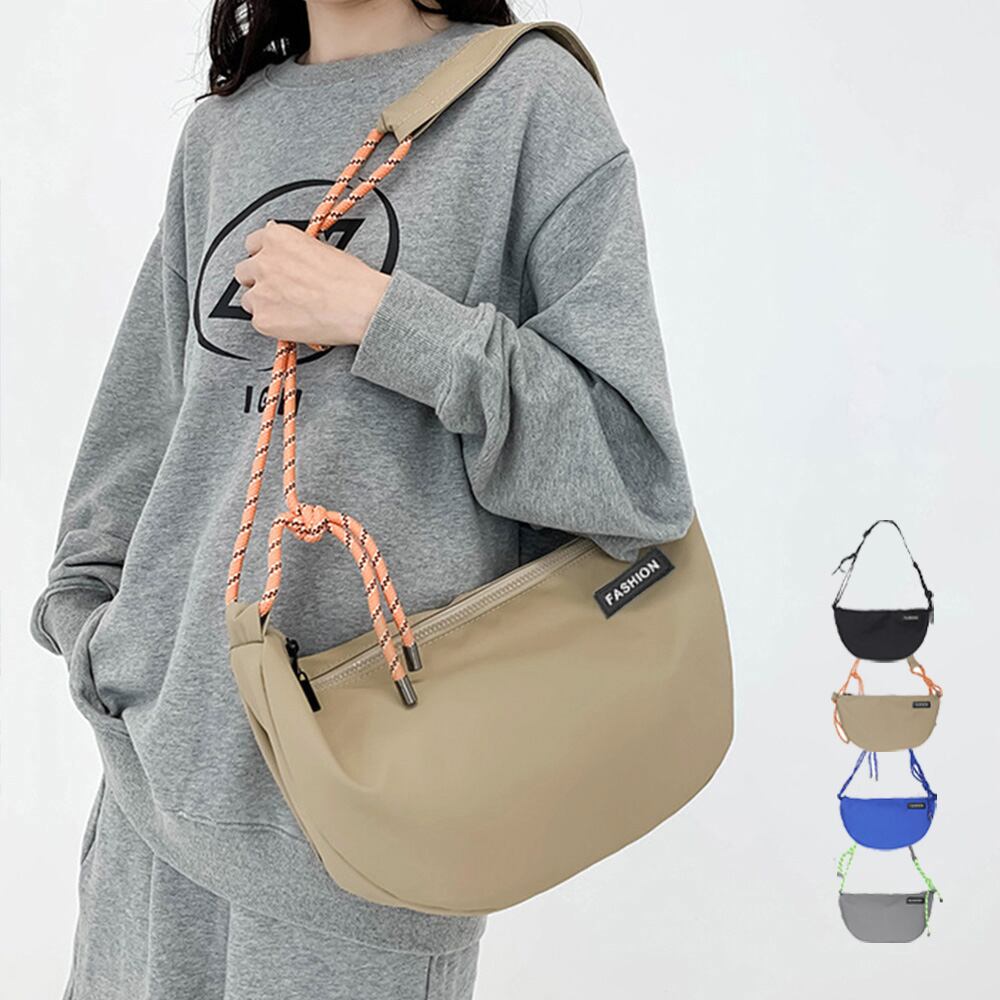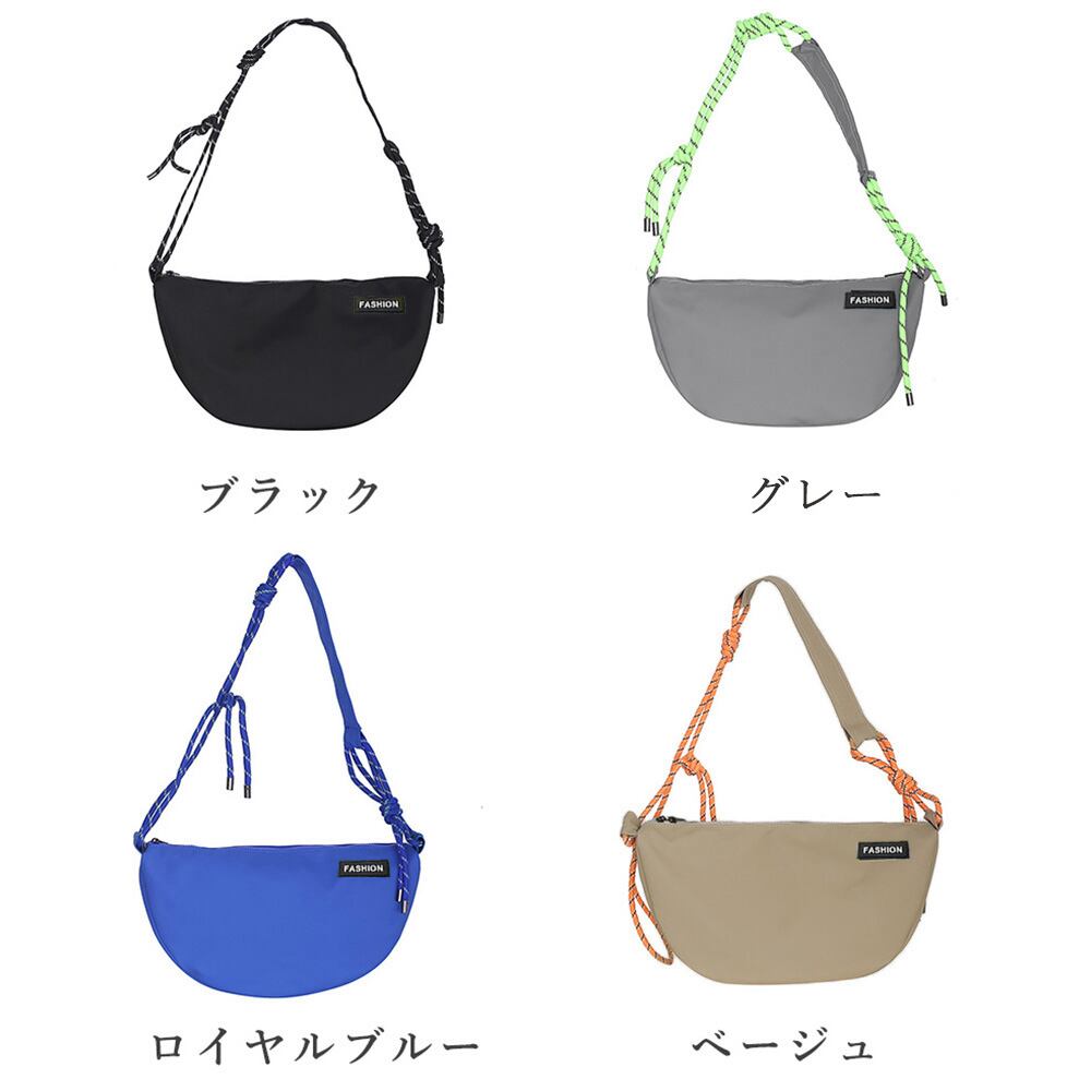 レディース カジュアル 斜めかけバッグ ボディーバッグ メンズ ナイロンカバン 軽量通学 シンプル ロゴ肩掛けバッグ韓国軽い ユニセックス 無地 三日月型鞄 カップル揃えカバン三日月型がありつつシャープな雰囲気をまとう、抜け感のあるユニセックスなメッセンジャーバッグ軽くて持ち運びやすく、ちょうどよいサイズ感がデイリー使いにぴったり♪長いザイル(紐)は結び目を作る事で長さ調節も可能バッグ内部には小物の仕分けに便利な内ポケットを搭載シンプルなデザイン、男女問わずオールシーズンで使えて、どんなスタイリングにも合わせやすい素材:ナイロン+ポリエステルカラー:ブラック/ベージュ/グレー/ロイヤルブルーサイズ:ワンサイズ高さ:約23cm 底横幅:約34cm マチ:約9cm ショルダー:最長約170cm(調節可能、取り外し可能)重さ:約220g裏地:あり内ポケット:あり生産国:中国※すべて平置きサイズです(採寸方法違いより、多少の誤差がございますので、ご了承ください)。※海外輸入品のため、商品の細部仕様は多少異なる場合がございます。予めご了承の上、ご注文お願い致します。