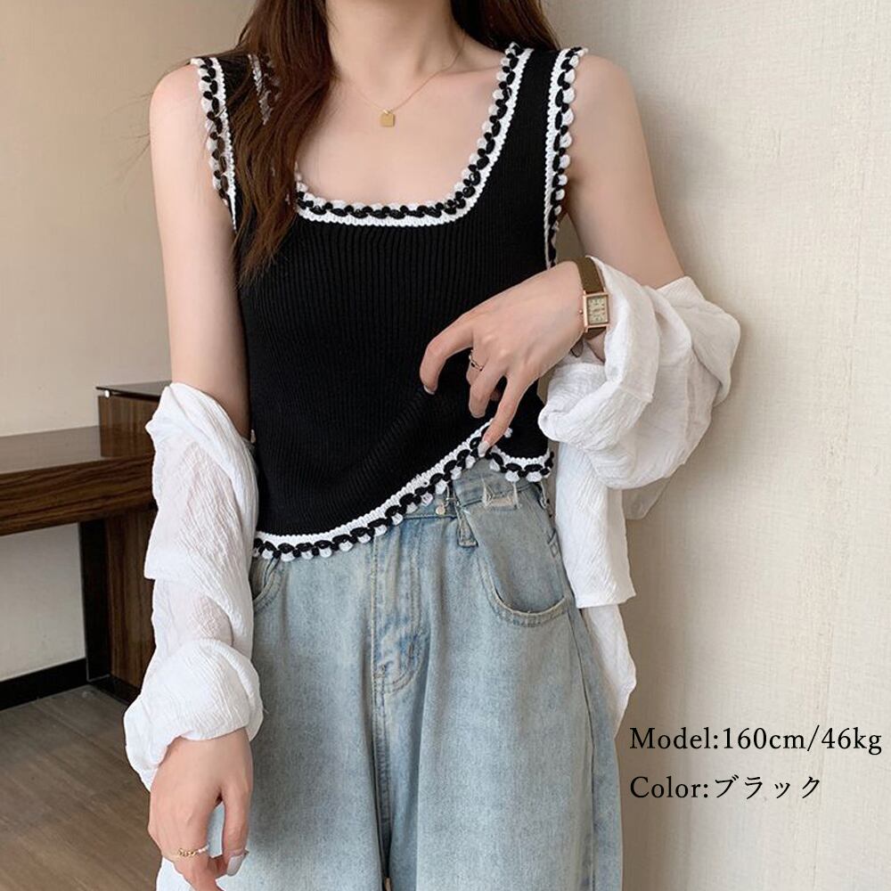 ニットトップス ノースリーブトップス ニットタンク ショート丈 重ね着 ニットベスト ニットソー 春夏 キャミソールインナートップス 韓国ファッション リブニット 可愛いフェミニンさと可愛さをプラスしてくれるサマーニットタンクトップUネックはデコルテラインを綺麗に見せてくれる1枚でも、シャツやカーデを軽く羽織って見せるインナーにするのもおすすめ素材:ポリエステル75%+アクリル25%カラー:ホワイト/ブラックサイズ:ワンサイズ着丈:約46cm 身幅:約32cm 胸囲:約64-86cm裏地:なし伸縮性:あり透け感:ホワイトのみややあり※ニット素材の為、伸縮具合によっては編みに隙間を感じる場合があります。生産国:中国※すべて平置きサイズです(採寸方法違いより、多少の誤差がございますので、ご了承ください)。※海外輸入品のため、商品の細部仕様は多少異なる場合がございます。予めご了承の上、ご注文お願い致します。