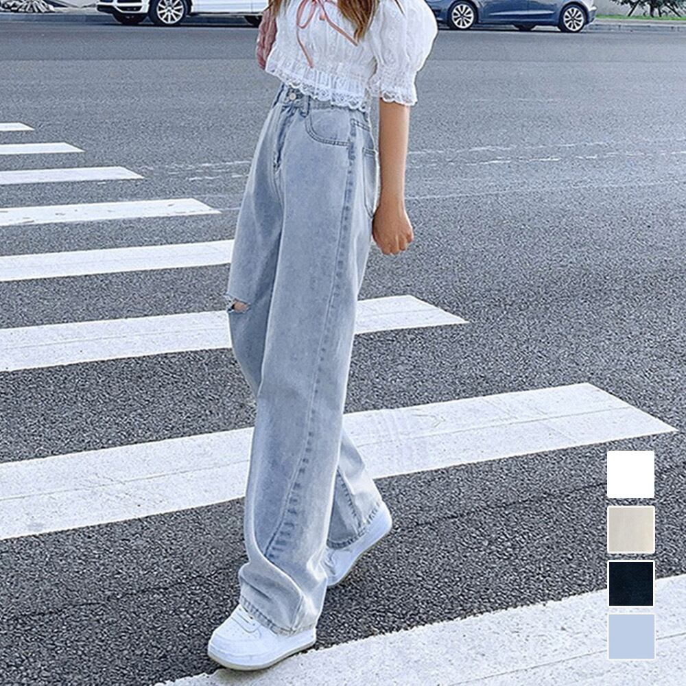 【日本倉庫即納】 デニムストレートパンツ ダメージジーンス