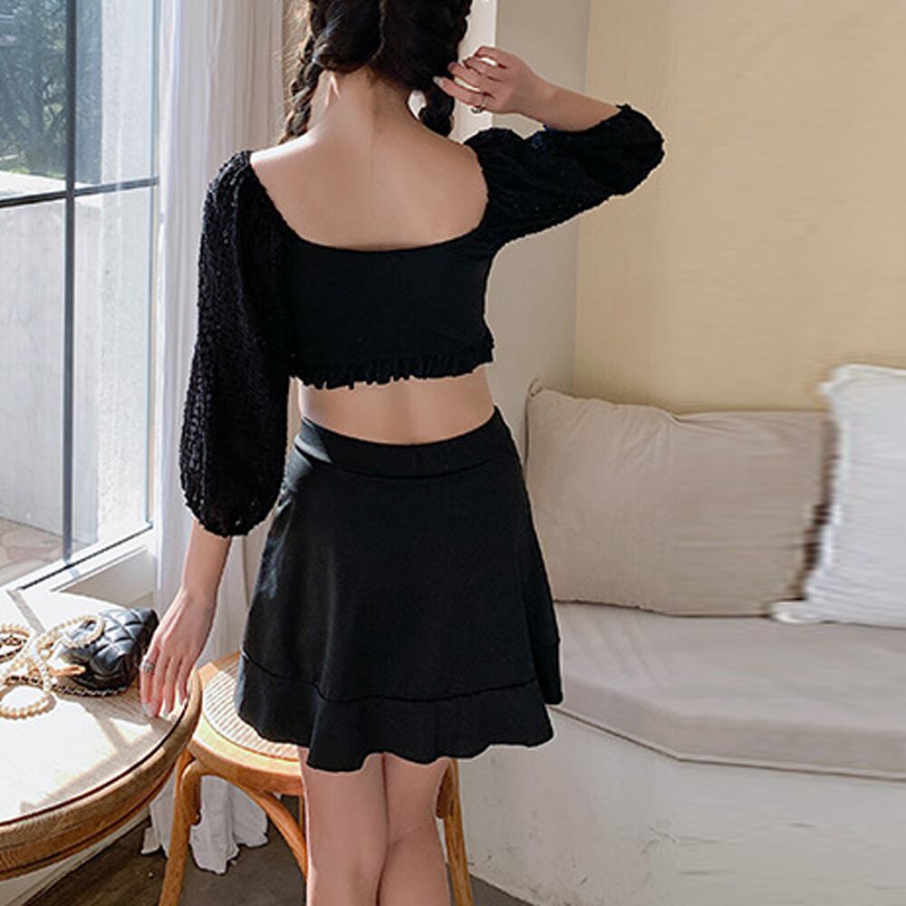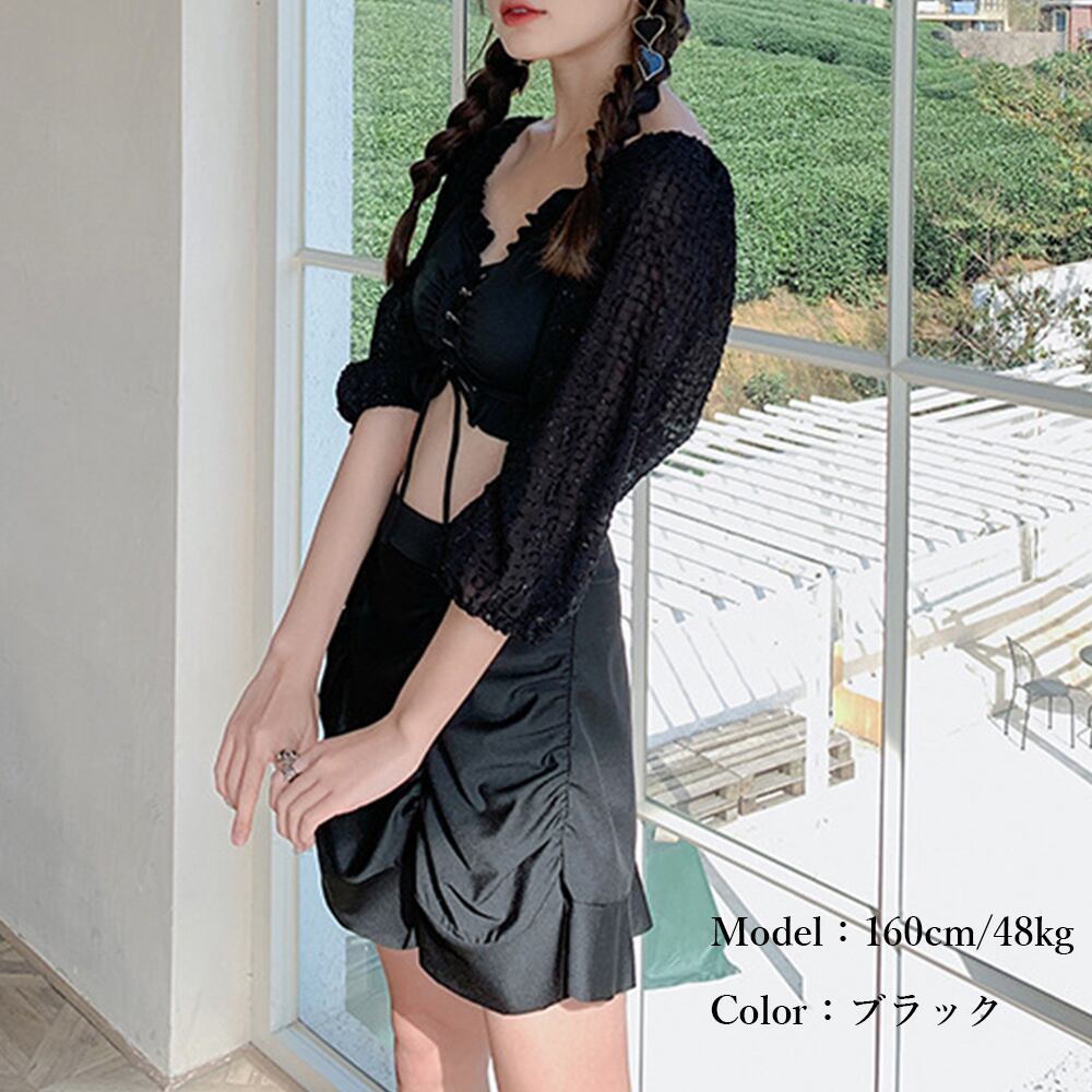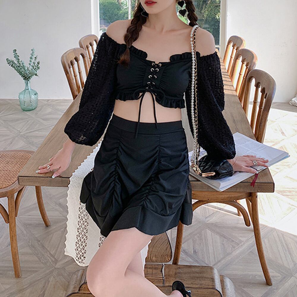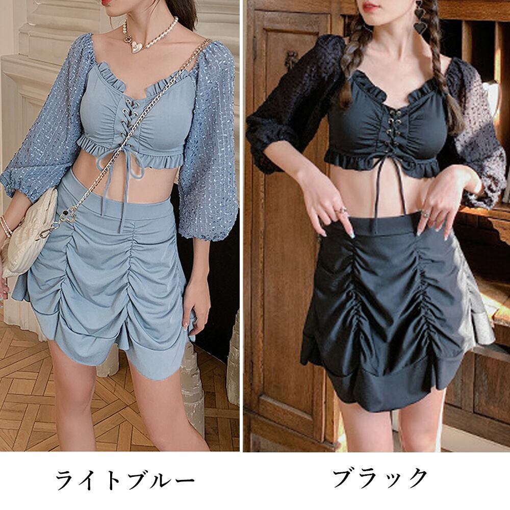 韓国風 水着2点セット レディース レースアップ盛れるビキニ プール 温泉 ハイウエスト スイムウェア タンキニ海外旅行露出控えめ 水着海 お洒落mizugi 可愛いビーチウェアセクシーな大人可愛い2点セットの水着レースアップデザインでバストを盛り上げて、ボディラインを美しく際立たせながらも、過度な露出は避け透け感×ボリューミーなスリーブで気になる二の腕もしっかりとカバー、7分袖で邪魔にならないのも嬉しいポイントトレンドを抑えながらオシャレに夏を満喫できるアイテムトップス素材:ポリエステル85%+ポリウレタン15%ボトムス素材: ポリエステル85%+ポリウレタン15%カラー:ブラック/ライトブルーサイズ:ワンサイズトップス着丈:約27cm 袖丈:43cm トップバスト:約68-96cm アンダーバスト:約62-82cmボトムス着丈:約35cm ウエスト(ゴム仕様):約60-96cm ヒップ:約78-110cm もも周り:約48-66cm商品詳細:・パッド:あり(取り外し可能)・パッド挿入可・ワイヤー:なし裏地:なし伸縮性:あり透け感:なし※すべて平置きサイズです(採寸方法違いより、多少の誤差がございますので、ご了承ください)。※海外輸入品のため、商品の細部仕様は多少異なる場合がございます。予めご了承の上、ご注文お願い致します。