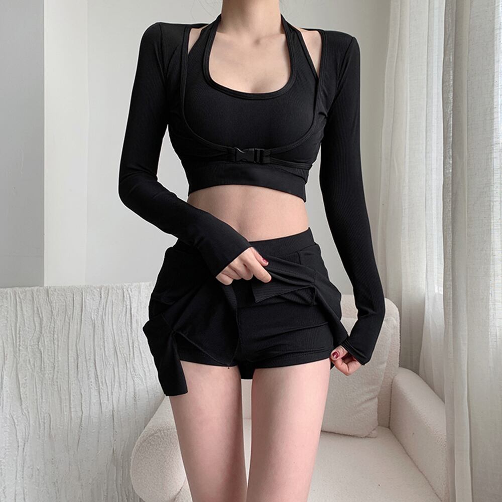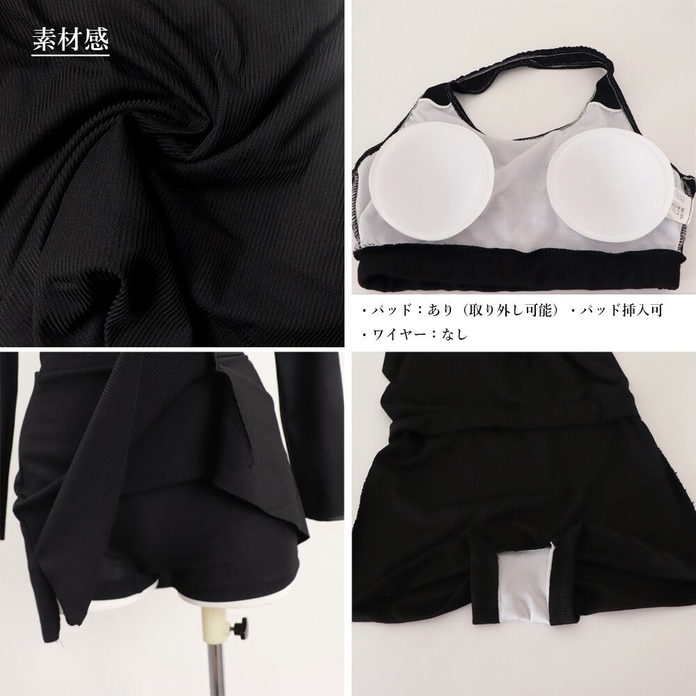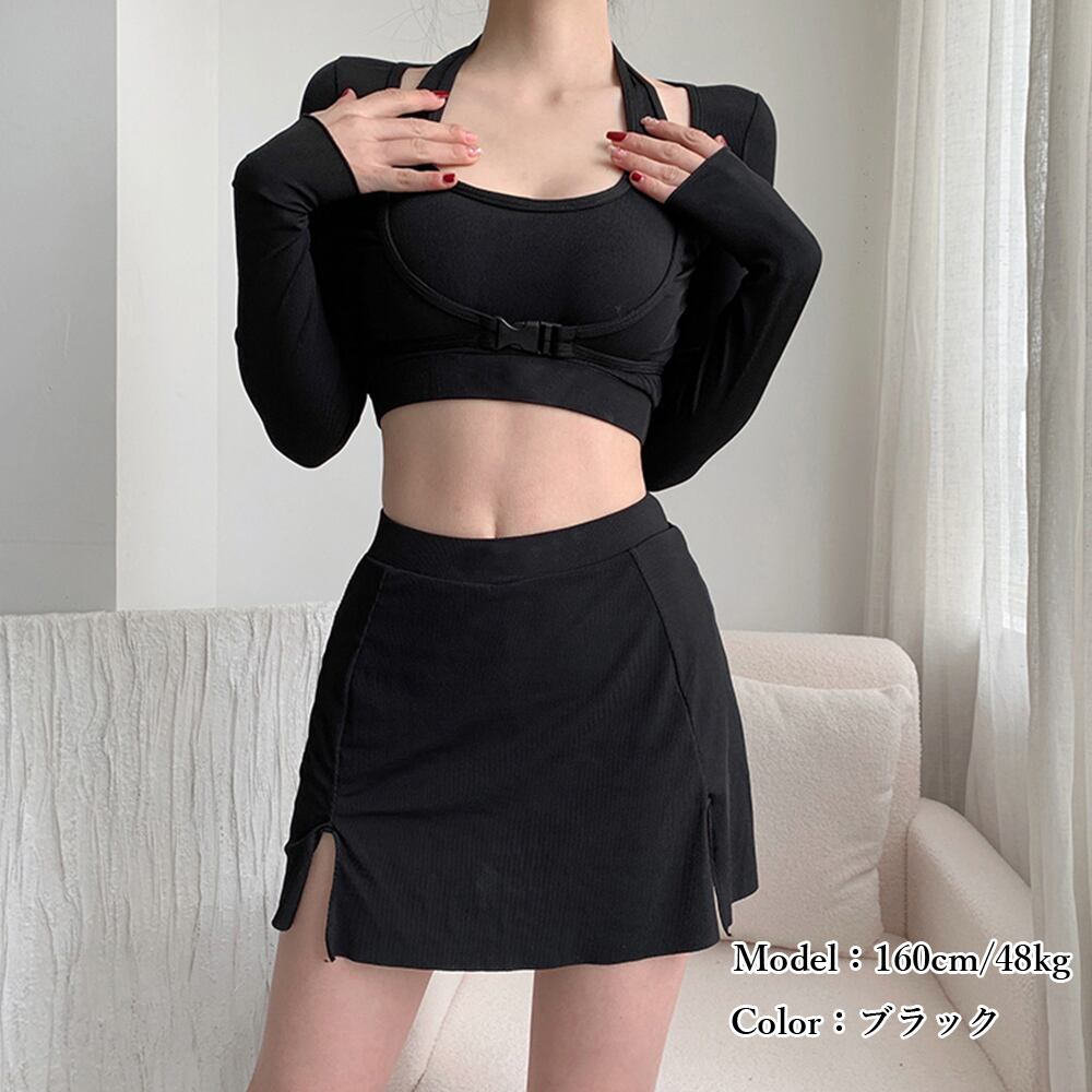 スポーツ水着セット スイムウェアセパレート 長袖ラッシュガード ハイウエスト水着日焼け防止 プール遊び 韓国風 水陸両用ジム運動用水着女性 タンキニ水着着やせ お洒落20代30代クールでおしゃれ見えするスイムウェア3点セット背中あきパッド付きキャミソールとインナーパンツタイプのスカートでカジュアルながらも女性らしい着こなしに日焼け対策としてもマストなラッシュガード付きウエストの高い位置を肌見せすることで、セクシーになりすぎないヘルシーなデザインが今の気分伸縮性抜群の生地で着心地も快適!運動にぴったりのスイムウェア!もちろん水泳にも◎トップス素材:ポリエステル85%+ポリウレタン15%ボトムス素材: ポリエステル85%+ポリウレタン15%カラー:ブラックサイズ:ワンサイズラッシュガード:着丈:約28cm 肩幅:約32cm 袖丈:約56cm ゆき:約72cm 身幅:約40cm 胸囲:フリー水着ブラトップ:トップバスト:約74-90cm アンダーバスト(ゴム仕様):約52-82cmボトムス:着丈:約34cm ウエスト(ゴム仕様):約56-90cm ヒップ:約70-100cm もも周り:約46-70cm商品詳細:・パッド:あり(取り外し可能)・パッド挿入可・ワイヤー:なし裏地:なし伸縮性:あり透け感:なし生産国:中国※すべて平置きサイズです(採寸方法違いより、多少の誤差がございますので、ご了承ください)。※海外輸入品のため、商品の細部仕様は多少異なる場合がございます。予めご了承の上、ご注文お願い致します。