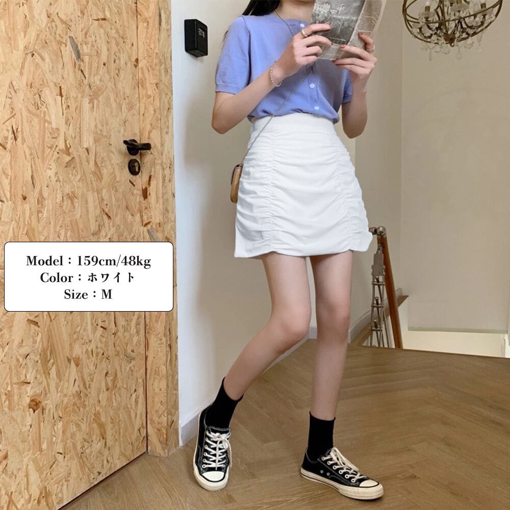 タイトスカート 美脚 ハイウエスト ショート丈 着やせ シルエット 大人 可愛い ボトムス きれいめ 夏美尻スカート セクシースカート 韓国ファッションタイト過ぎず、程よく女性らしいシルエットを演出してくれるショート丈スカート着回ししやすいベーシックなカラーを展開ハイウエストのデザインで脚を綺麗に見せてくれるブラウスやカットソーと合わせるとフェミニンなコーディネートが完成素材:ポリエステル80%+綿20%カラー:ブラック/ホワイトサイズ:M/L[M]スカート丈:約40cm ウエスト(ゴム仕様):約50-96cm ヒップ:約80-118cm[L]スカート丈:約41cm ウエスト(ゴム仕様):約52-98cm ヒップ:約84-120cm裏地:なし伸縮性:あり透け感:ホワイトのみややあり生産国:中国※すべて平置きサイズです(採寸方法違いより、多少の誤差がございますので、ご了承ください)。※海外輸入品のため、商品の細部仕様は多少異なる場合がございます。予めご了承の上、ご注文お願い致します。