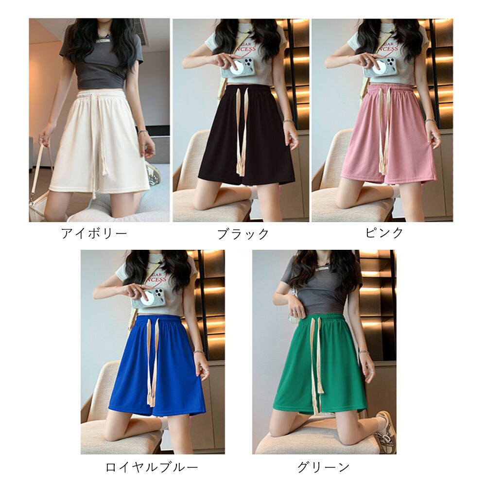レディースボトムス ハーフパンツ ウエストゴム 紐付き ひざ上ズボン カジュアル ゆったり シンプル カラー短パン総ゴムショーパン 楽ちんパンツ新作 リラックスパンツ5色展開、両サイドにポケット付きのスウェットショート丈パンツです。リラックス感のあるゆったりとしたシルエットが着心地の良さを実現します。スポーティーなデザインで、普段使いからスポーツ時など幅広く活躍します。素材:ポリエステル95%+ポリウレタン5%カラー:ブラック/アイボリー/ピンク/グリーン/ロイヤルブルーサイズ:M/L[M]着丈:約42cm 股下:約11cm ウエスト(ゴム仕様):約62-96cm ヒップ:約98-136cm もも周り:約60-84cm[L]着丈:約44cm 股下:約12cm ウエスト(ゴム仕様):約66-100cm ヒップ:約100-138cm もも周り:約62-86cm裏地:なし伸縮性:あり透け感:アイボリーのみややあり生産国:中国※すべて平置きサイズです(採寸方法違いより、多少の誤差がございますので、ご了承ください)。※海外輸入品のため、商品の細部仕様は多少異なる場合がございます。予めご了承の上、ご注文お願い致します。