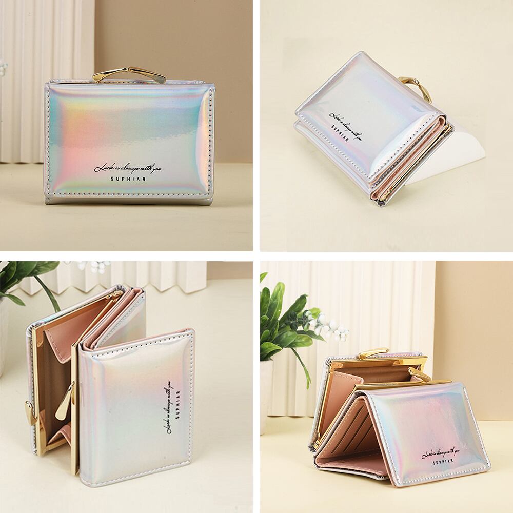 オーロラカラー ミニ財布 小銭入れ カード入れ 軽い 小さめ コンパクト財布 女子おしゃれ 中学生高校生 PUレザー財布かわいい財布ギフト 大容量 ウォレット マイクロ財布可愛いトレンドのミニバッグにもぴったりのミニウォレット♪角度によって色が変わるオーロラカラーがキュート☆手の平に収まるコンパクトサイズながら、お札も小銭もしっかり収納できる実用性にも優れたデザイン小銭入れはがま口になっているので、大きく開いて取り出しやすい仕様小さめのデザインなので、ミニバッグやポシェットなどに入れて気軽にお出かけできる素材:合成皮革カラー:ブラック/シルバー/ピンク/ラベンダー/ブルーグリーン本体サイズ:約W10.5cm×H8cm[仕様]札入れ×1コインポケット×1カードポケット×5フリーポケット×3生産国:中国※すべて平置きサイズです(採寸方法違いより、多少の誤差がございますので、ご了承ください)。※海外輸入品のため、商品の細部仕様は多少異なる場合がございます。予めご了承の上、ご注文お願い致します。