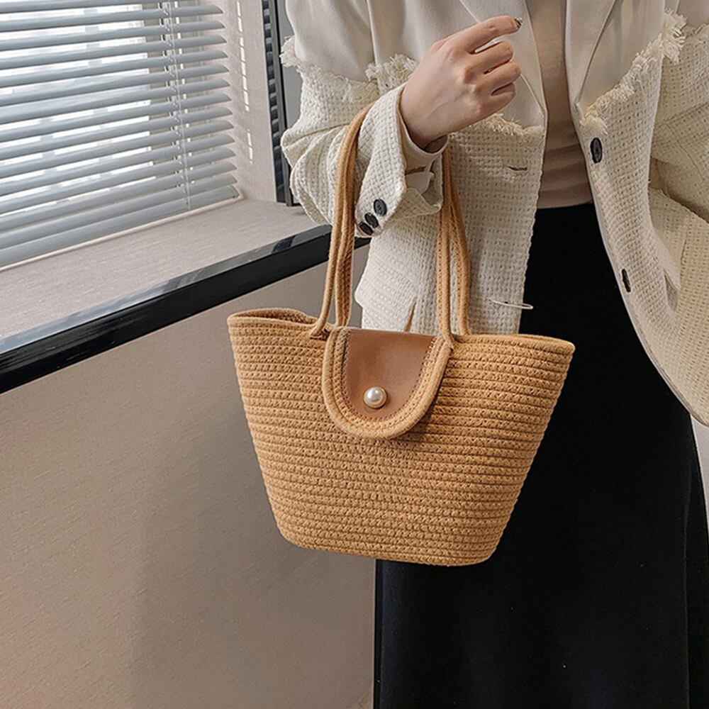 レディース カジュアル ストローバッグ 大人可愛い サマーバケツバッグ おしゃれ 麦わらバッグ 肩掛け 編みバッグ韓国リゾートバッグ 夏 ペーパーバッグ軽量 籠バッグ 大人上品夏海をイメージした明るく爽やかな色合いが目を引くかごバッグ荷物がたくさん入るので、通勤通学だけでなく、ピクニックやお出かけにも便利夏のスタイリングを軽やかに仕上げるナチュラルカラーは、手にするだけで涼し気な清潔感をプラス。お祭り、花見、ピクニック、そしてリゾート旅行!その日の装いやムードに合わせて気軽にコーデできる♪素材:コットン+ポリエステル+合成皮革カラー:ライトベージュ/キャメルサイズ:高さ:約23cm 底横幅:約22cm マチ:約7cm 持ち手高さ:約23cm(調節不可、取り外し不可)重さ:約478g裏地:なし内ポケット:なし生産国:中国※すべて平置きサイズです(採寸方法違いより、多少の誤差がございますので、ご了承ください)。※海外輸入品のため、商品の細部仕様は多少異なる場合がございます。予めご了承の上、ご注文お願い致します。