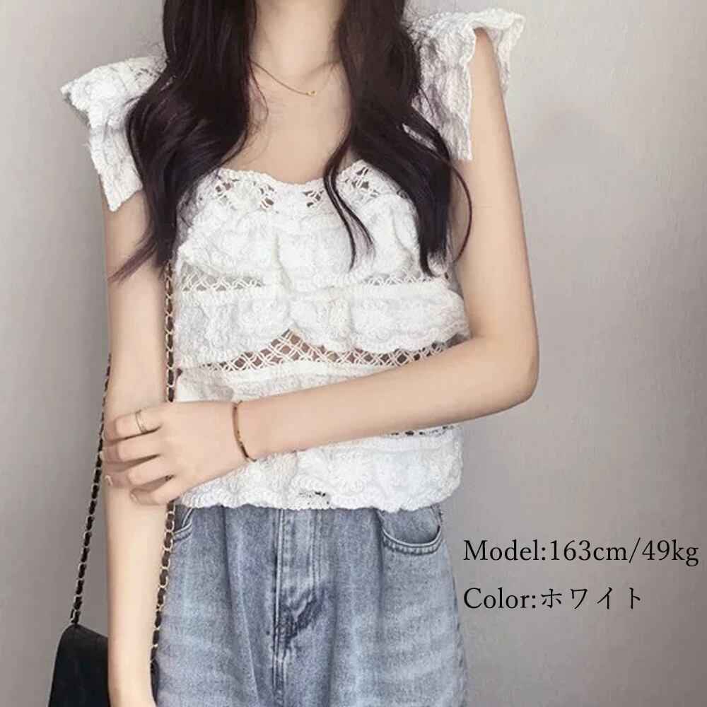 かぎ編み ベスト 肌見せ スクエアネック 重ね着 セクシー 韓国ファッション 大人可愛い フリルプルオーバーレディーストップス ノースリーブ 洋服 お洒落 着回しこれからの季節に取り入れたい透かし編みのノースリーブトップスすっきりとしたスクエアネックで、ハイネックやクルーネックのインナーと好相性スカートはもちろん、デニムやワイドパンツなどのコーディネートもおすすめ素材:綿65%+ポリエステル35%カラー:ホワイト/ベージュサイズ:ワンサイズ着丈:約50cm 身幅:約43cm 胸囲:約86cm裏地:なし伸縮性:なし透け感:あり※デザイン上透け感がございますので、インナーの着用をお勧め致します。生産国:中国※すべて平置きサイズです(採寸方法違いより、多少の誤差がございますので、ご了承ください)。※海外輸入品のため、商品の細部仕様は多少異なる場合がございます。予めご了承の上、ご注文お願い致します。