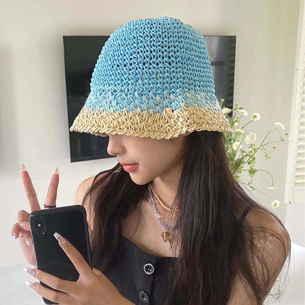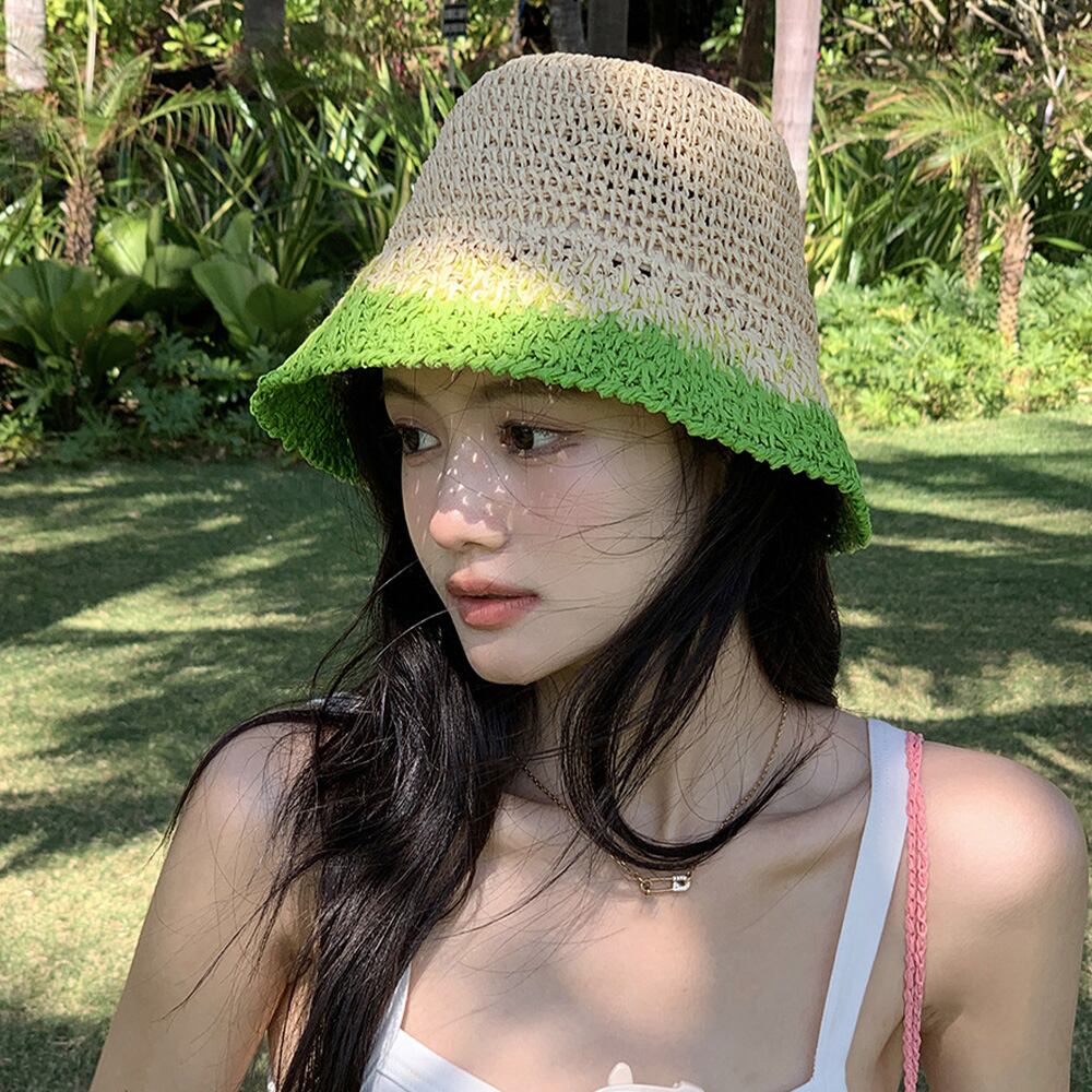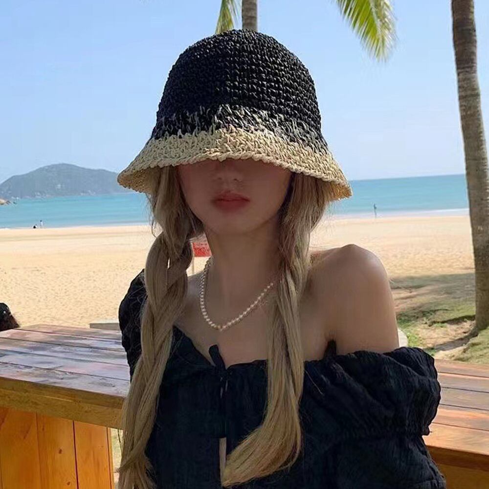 【日本倉庫即納】 麦わら帽子 配色ストローハット 小顔韓国