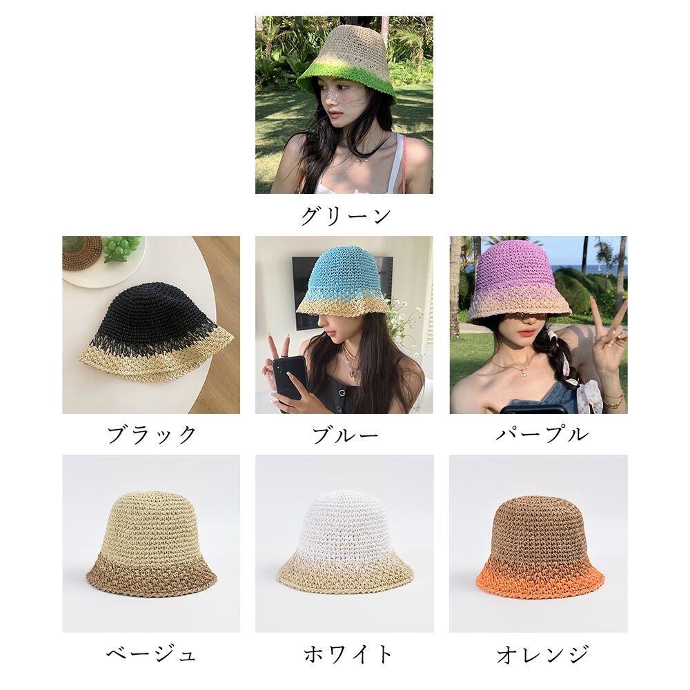 レディース帽子 バケットハット ナチュラル uv対策 日焼け対策 折りたたみ 通気性 リゾート 夏海 可愛い おしゃれ折りたたみハット 日よけ帽子 春秋夏 紫外線対策 ぼうし編みの配色が目を惹くデザインの麦わら帽子。HATのつばは長めになるので、日焼け対策にもバッチリ。ペーパー素材で通気性が良い、レジャーシーンでも大活躍する。素材:指定外繊維(ペーパー)カラー:ブラック/ホワイト/ベージュ/パープル/グリーン/オレンジ/ブルー頭囲:約56-58cm(調節ひも付き、サイズの微調節が可能)深さ:約23cmつば:約7cm裏地:なし伸縮性:なし生産国:中国※すべて平置きサイズです(採寸方法違いより、多少の誤差がございますので、ご了承ください)。※海外輸入品のため、商品の細部仕様は多少異なる場合がございます。予めご了承の上、ご注文お願い致します。