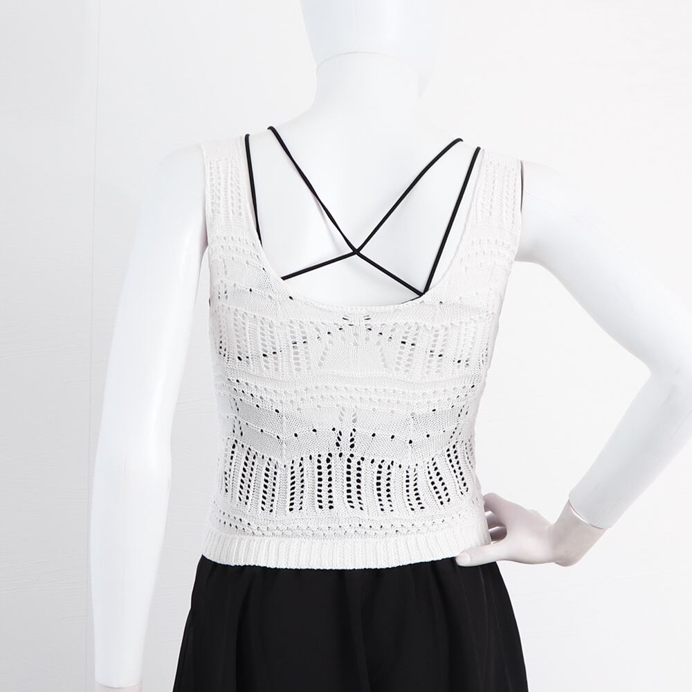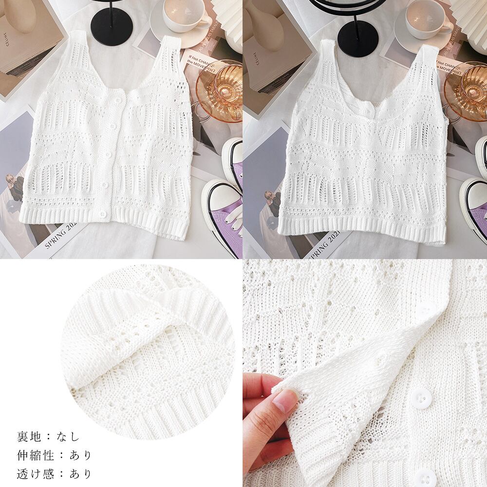 【日本倉庫即納】 透かし編み タンクトップ スクエアネック