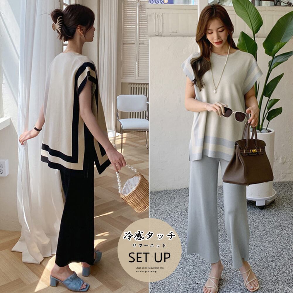 【日本倉庫即納】 ニットセットアップ 冷感タッチレディース