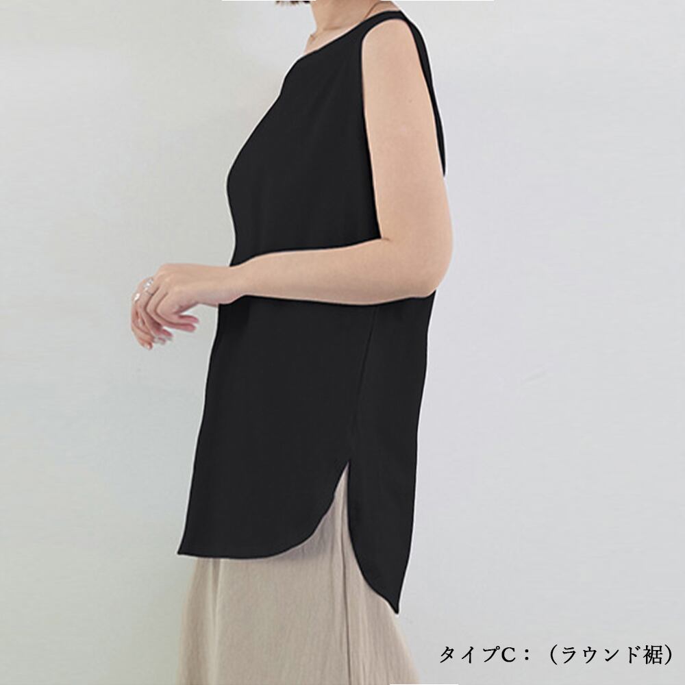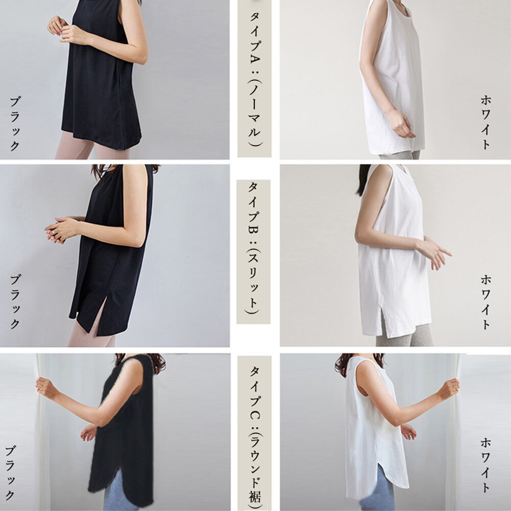 ノースリーブトップス レディース ラウンド裾 ゆったり シャツ 重ね着 チュニックカットソーインナー夏 レイヤード風 体型カバー大人気のレイヤードチュニック丈タンクトップスリットは切れ目が入っているのでボトムスをチラ見せすることができる見せたくないところを隠してくれる、まさに計算されたデザイン素材:綿65%+ポリエステル35%タイプ:A(ノーマル)/B(スリット)/C(ラウンド裾)カラー:ブラック/ホワイトサイズ:ワンサイズ[A、B共通]着丈:約72cm 肩幅:約35cm 身幅:約49cm 胸囲:約98-120cm[C]着丈:前丈約70cm/後丈約73cm 肩幅:約35cm 身幅:約49cm 胸囲:約98-120cm裏地:なし伸縮性:あり透け感:ホワイトのみあり生産国:中国※すべて平置きサイズです(採寸方法違いより、多少の誤差がございますので、ご了承ください)。※海外輸入品のため、商品の細部仕様は多少異なる場合がございます。予めご了承の上、ご注文お願い致します。