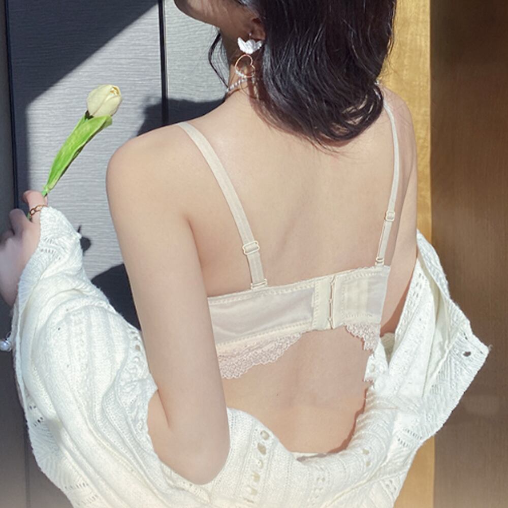 レース ランジェリーセット ノンワイヤー ナイトブラ 谷間 上下セット 盛れるブラセット バスト盛れる 可愛いインナー美胸をかなえる大人可愛いノンワイヤーブラジャー&ショーツセットノンワイヤーで締め付け感がなく、谷間が大きく見えてフェミニンらしくなるクラシカルな印象の色展開、落ち着きがあって細部まで抜けないオトナ女子を演出、自分へのご褒美でも女性家族・友人・知人へのプレゼントにも最適ブラジャー:ナイロン85%+ポリウレタン15%ショーツ本体:ナイロン85%+ポリウレタン15%クロッチ:綿100%カラー:ブラック/アイボリー/モカベージュ/ピンクサイズ:S/M/L/XLブラジャー:[S]32/70 70AB トップバスト:約68-72cm アンダーバスト:約58-62cm[M]34/75 75AB トップバスト:約72-76cm アンダーバスト:約60-64cm[L]36/80 80AB トップバスト:約74-78cm アンダーバスト:約62-66cm[XL]38/85 85AB トップバスト:約80-84cm アンダーバスト:約66-70cmショーツ:(全サイズ共通)[S/M/L/XL]股上:約18cm ウエスト:約58-78cm ヒップ:約62-82cm●仕様:3/4カップ、ホック3列4段階調節、肩紐取外し可、ワイヤーなし●効果:谷間づくり、ボリュームUP●透け感:ブラジャーアンダーの部分あり/ショーツあり生産国:中国※すべて平置きサイズです(採寸方法違いより、多少の誤差がございますので、ご了承ください)。※海外輸入品のため、商品の細部仕様は多少異なる場合がございます。予めご了承の上、ご注文お願い致します。