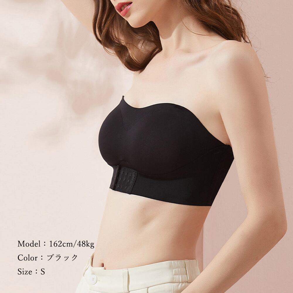 レディース フロントホックブラ ストレスフリー ひびきにくい ドレスブラジャー ズレ落ちない 盛れる谷間 通気性肩紐4本チューブトップ脇高 ドレスブラずれない 結婚式パーティー用ずれ落ちない盛れるストラップレスブラフロントホックで着脱がしやすいストラップを取り付けることができるため、2wayブラとしてお使いいただける。ストラップレスは肩や背中開いた服やドレスの時だけでなく肩紐の食い込みや肩こりのお悩みも解決シームレスでTシャツやブラウスなど薄い生地でもキレイに着こなせる本体素材:ナイロン75%+ポリウレタン25%フロントベルト素材:ナイロン80%+ポリウレタン20%カラー:ブラック/ホワイト/ピンクベージュサイズ:S/M/L/XL[S]32/70 70AB トップバスト:約58-66cm アンダーバスト:約52-60cm[M]34/75 75AB トップバスト:約62-70cm アンダーバスト:約56-64cm[L]36/80 80AB トップバスト:約64-72cm アンダーバスト:約58-66cm[XL]38/85 85AB トップバスト:約72-80cm アンダーバスト:約66-74cm●仕様:カップ付き(取外し可)、フロントホック3列4段階調節、肩紐取外し可、透明ストラップ付き、ワイヤーなし●効果:谷間づくり、ボリュームUP●透け感:淡色のみ背中部分ややあり生産国:中国※すべて平置きサイズです(採寸方法違いより、多少の誤差がございますので、ご了承ください)。※海外輸入品のため、商品の細部仕様は多少異なる場合がございます。予めご了承の上、ご注文お願い致します。