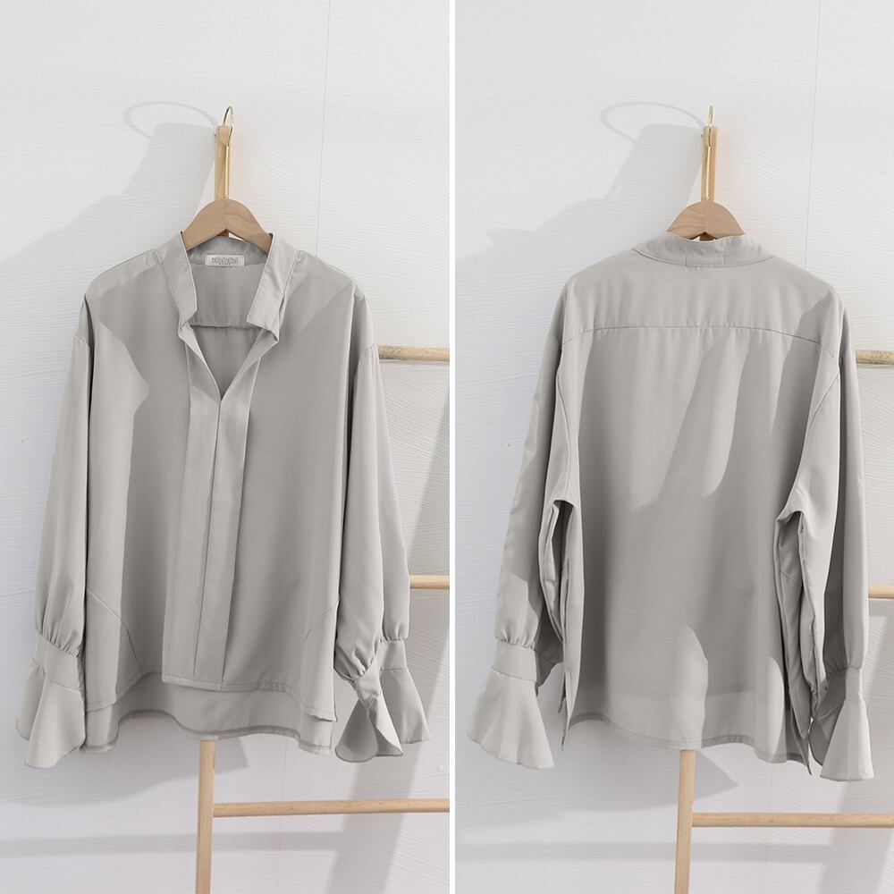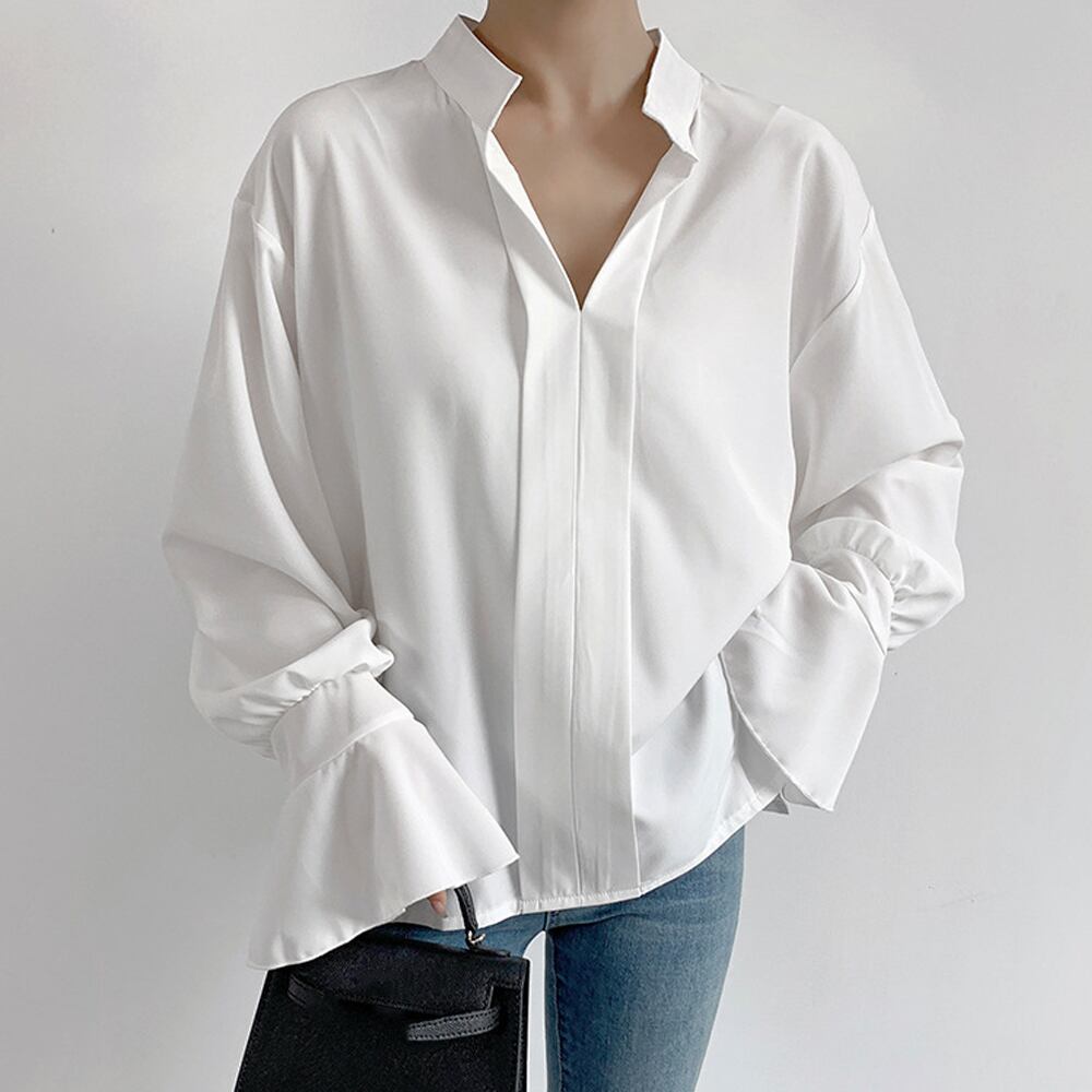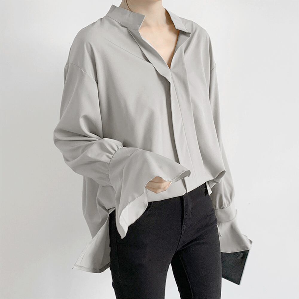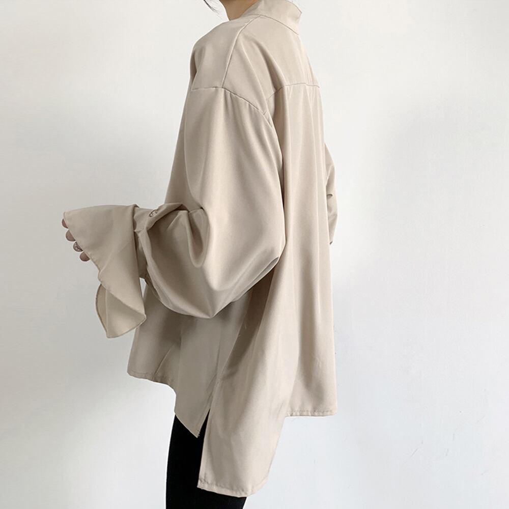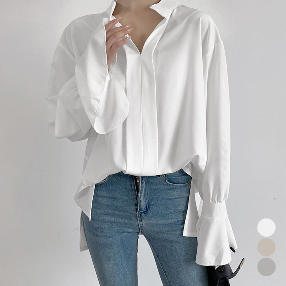 【日本倉庫即納】 フレア袖シャツブラウスレディースゆったり
