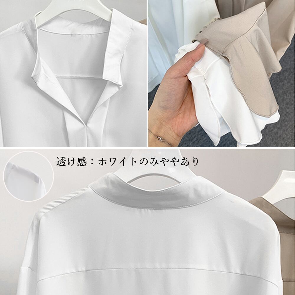 vネック 長袖ブラウン スリット 軽いトップス オフィスカジュアル シフォンブラウス白 大人きれいめ ドレープシャツ通勤とろみブラウス韓国 ボリューム袖 上品 オフィスブラウストレンド感溢れるゆったりとしたシフォンシャツブラウス袖口がフレアになっており、さりげなくおしゃれなアクセントに女性らしいシルエットでありながら、ふんわりとしたデザインがモダンな印象を与えるゆったりとしたシルエットが特徴で、動きやすく快適な着心地日常の様々なシーンで活躍すること間違いなし素材:ポリエステル85%+綿15%カラー:ホワイト/モカベージュ/ライトグレーサイズ:ワンサイズ着丈:前丈約63.5cm/後ろ丈約70cm 肩幅:約51cm 袖丈:約60cm ゆき:約85.5cm 身幅:約61cm 胸囲:約122cm裏地:なし伸縮性:なし透け感:ホワイトのみややあり生産国:中国※すべて平置きサイズです(採寸方法違いより、多少の誤差がございますので、ご了承ください)。※海外輸入品のため、商品の細部仕様は多少異なる場合がございます。予めご了承の上、ご注文お願い致します。