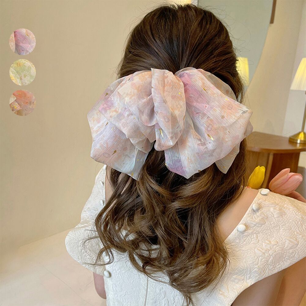 花柄 シフォンバレッタ 大きめリボン 髪飾り 蝶々結び 大人可愛い まとめ髪カジュアル女子会 おしゃれ 流行りタイダイ柄ヘアアレンジグッズ パッチン留め 簡単 ボリュームふんわり春夏らしい鮮やかな色合いがポイントのタイダイ柄バレッタふんわりとしたシフォン素材ボリュームのあるビッグリボンでヘアスタイルをぱっと華やかに◎いつものコーデにプラスするだけで、キュートで姫チックなコーデから、清潔感のあるエレガントなコーデなど様々な女性らしさを演出してくれる素材:ポリエステル+合金カラー:オレンジ/ラベンダー/ミントグリーンサイズ:リボンサイズ:横24cm*縦14cmバレッタサイズ:横10cm*縦1cm生産国:中国※包装に関しての注意点:こちらの商品は激 安で販売しているため、化粧箱は付いていませんが、商品に傷付かないよう簡易包装で発送とさせていただきます。※海外輸入品のため、商品の細部仕様は多少異なる場合がございます。予めご了承の上、ご注文お願い致します。
