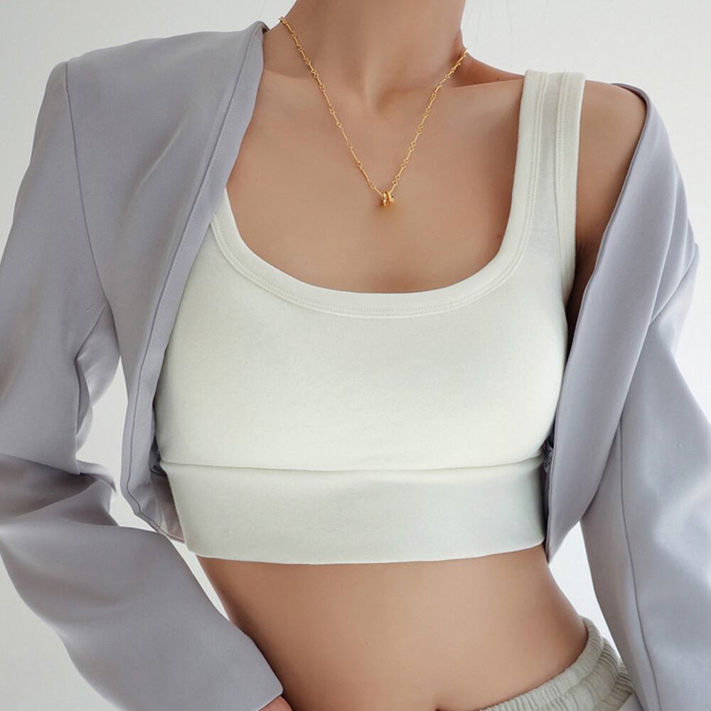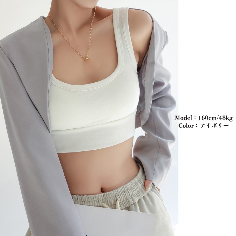 【日本倉庫即納】 タンクトップ ショート丈 カップ付き韓国