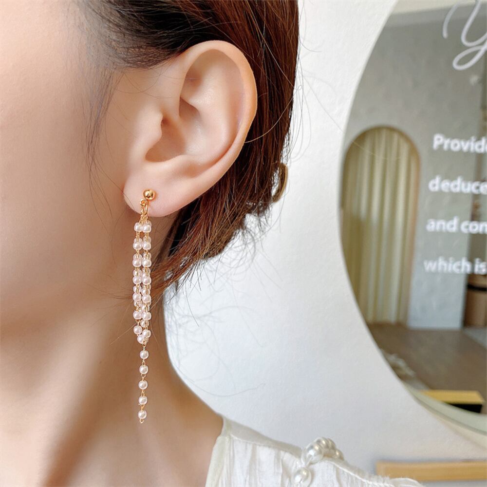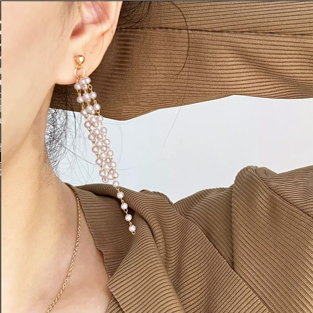 【日本倉庫即納】 パールピアス 揺れるロングイヤリング韓国