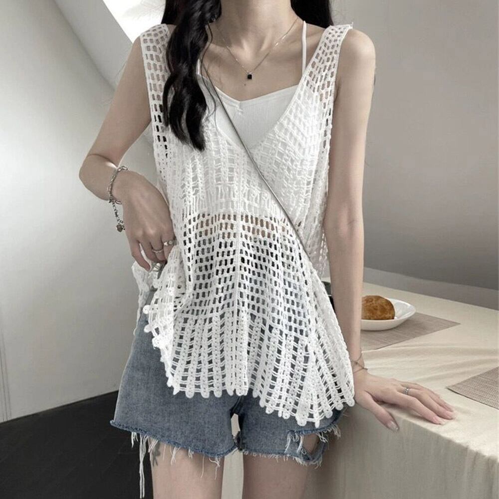 重ね着 シンプル 透かし編みベスト春夏 セクシー タンクトップ 韓国風 クロシェ編み ニットトップスレイヤードトップス サマーニット 体型カバーベスト夏メッシュ編みの涼しげな印象かつさりげなく肌見せしてヘルシーセクシーな透かし編みサマーニットトップスが新作登場体のラインを拾いにくいゆったりシルエットが大人のこなれ感を演出Tシャツやインナーに重ねてロングシーズン気軽に華やかさをプラスする万能アイテム素材:ポリエステル75%+アクリル25%カラー:ベージュ/ホワイトサイズ:ワンサイズ着丈:約60cm 身幅:約52cm 胸囲:約104cm裏地:なし伸縮性:なし透け感:あり※デザイン上透け感がございますので、インナーの着用をおすすめ致します。生産国:中国※すべて平置きサイズです(採寸方法違いより、多少の誤差がございますので、ご了承ください)。※海外輸入品のため、商品の細部仕様は多少異なる場合がございます。予めご了承の上、ご注文お願い致します。