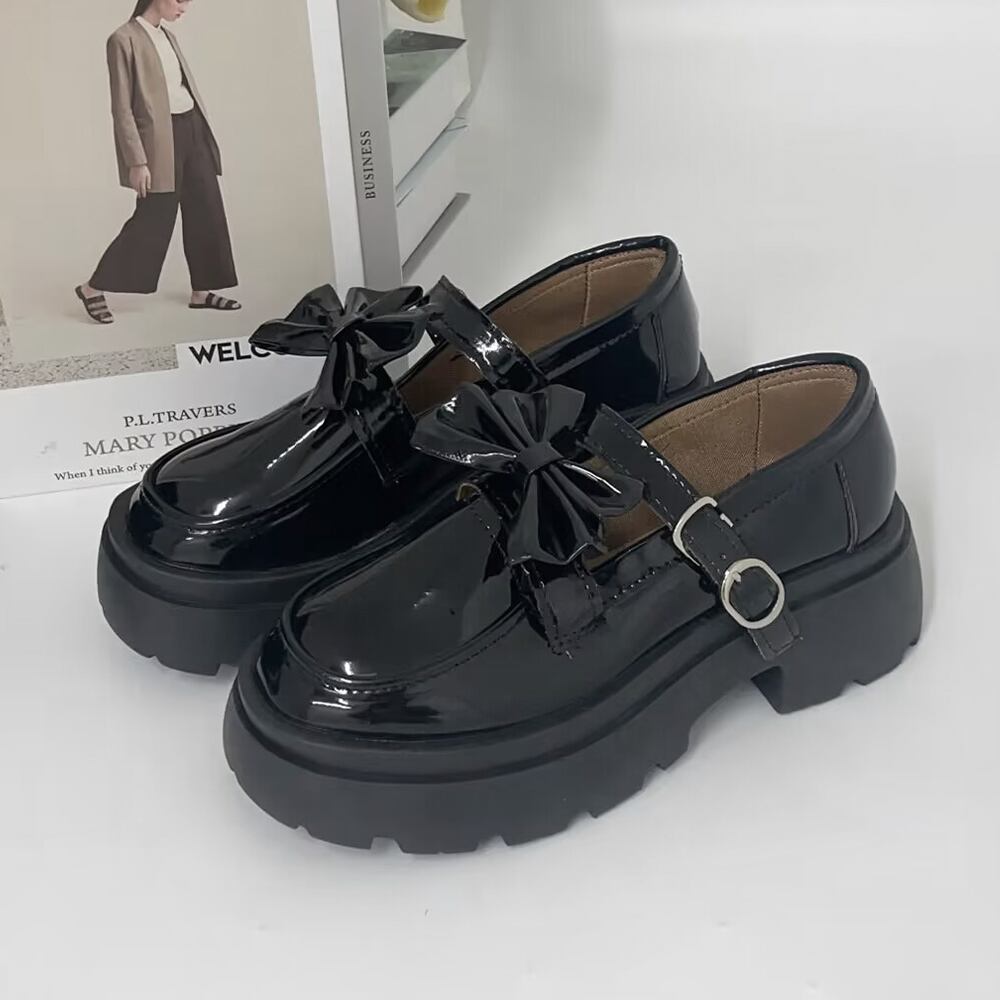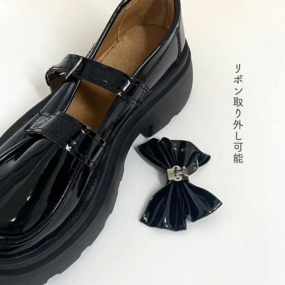 【日本倉庫即納】 厚底ローファー レディース リボン
