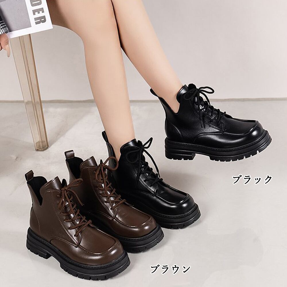 【日本倉庫即納】 厚底ブーツ韓国 編み上げシューズ美脚脚長