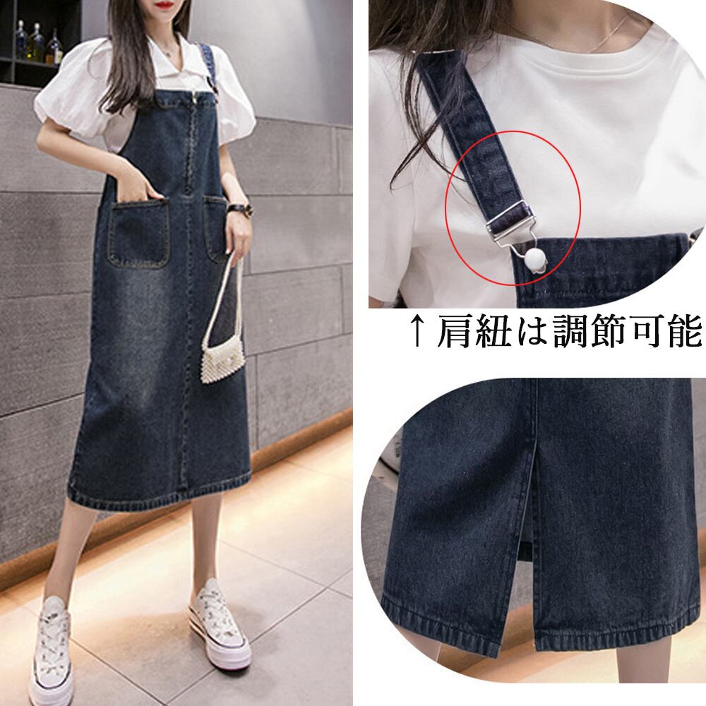 デニムワンピース スリット入り ワンピ ゆったり 体型カバー ポケット付き デニムジャンパースカート フロントファスナーオールシーズン デニムスカート 韓国風 カジュアル楽な着心地で体型カバーもできるデニムサロペットスリットデザインで足さばきしやすく、スタイリング全体に抜け感を演出してくれるシンプルトップスに合わせるだけでリラクシーな大人カジュアルスタイルを楽しめる素材:綿65%+ポリエステル35%カラー:サックス/インディゴサイズ:ワンサイズ総丈(肩紐で長さ調節可能):約102-112cm 身幅:約51cm 胸囲:約102cm ウエスト:約104cm ヒップ:約106cm裏地:なし伸縮性:なし透け感:なし生産国:中国※すべて平置きサイズです(採寸方法違いより、多少の誤差がございますので、ご了承ください)。※海外輸入品のため、商品の細部仕様は多少異なる場合がございます。予めご了承の上、ご注文お願い致します。