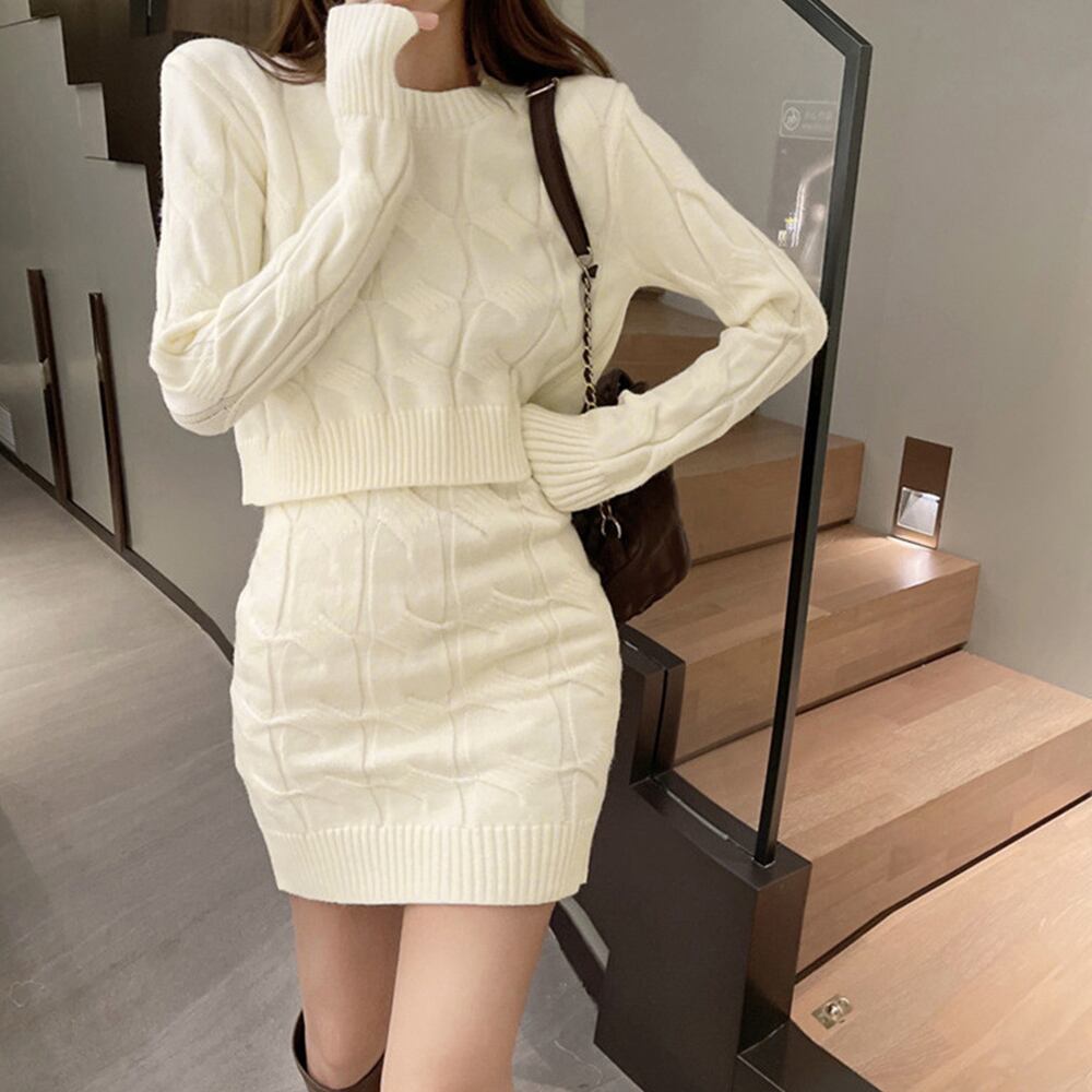 韓国上下2点セット ケーブルニット クルーネックニットセーター クロップド丈 大人可愛い ハイウエストタイトスカート秋冬着回しニットセット ニットアンサンブル ミニスカオルチャン上下で着こなしてお洒落が決まるニットセットアップスカートのウエストは総ゴム仕様なのでストレスフリーな穿き心地セットで着用し、別々でもお楽しみいただけるアイテムロングブーツと合わせると今年らしい雰囲気にトップス素材:ポリエステル75%+アクリル25%スカート素材:ポリエステル75%+アクリル25%カラー:アイボリー/ダークベージュ/グレー/ピンクサイズ:ワンサイズトップス:着丈:約41cm 肩幅:約36cm 袖丈:約59cm ゆき:約77cm 身幅:約42cm 胸囲:約84-140cmスカート:着丈:約48cm ウエスト:約60-100cm ヒップ:約68-120cm裏地:なし伸縮性:あり透け感:アイボリーのみ若干あり※ニット素材の為、伸縮具合によっては編みに隙間を感じる場合があります。生産国:中国※すべて平置きサイズです(採寸方法違いより、多少の誤差がございますので、ご了承ください)。※海外輸入品のため、商品の細部仕様は多少異なる場合がございます。予めご了承の上、ご注文お願い致します。