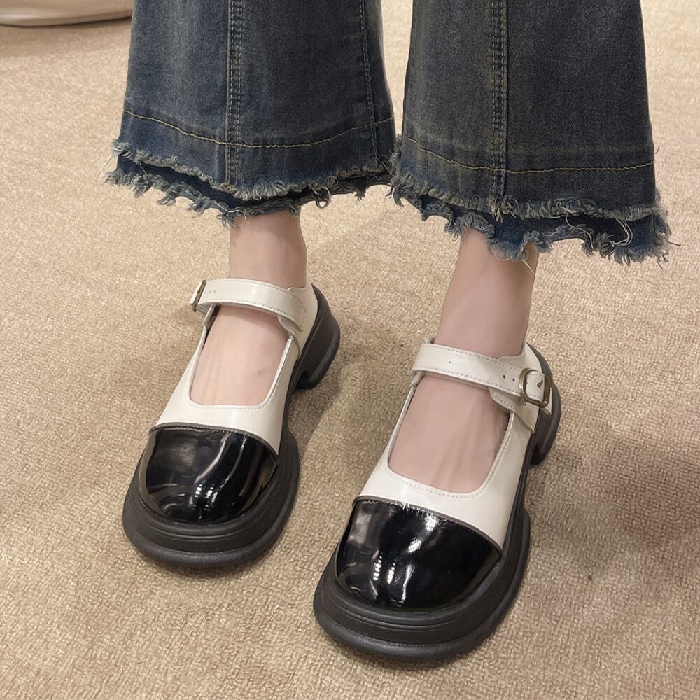 ドレスシューズ 美脚 厚底靴 レザー調 可愛い 通学 疲れにくい 歩きやすい おしゃれ 快適 ボリュームソールストラップシューズ ローヒールシューズ 韓国ファッションボリュームのある足元が可愛く、コーデをバランスよく仕上げてくれるソックスと相性が良い一足ミニ丈のボトムスと合わせて、トレンドの韓国ファッションやY2Kスタイルもおすすめ甲素材:合成皮革底素材:合成底カラー:ブラック/アイボリーサイズ:22.5cm(35)/23.0cm(36)/23.5cm(37)/24.0cm(38)/24.5cm(39)/25.0cm(40)(カッコ内は靴底表記となります)※少し小さめの作りなので、普段よりワンサイズアップをおススメ致します。[22.5]長さ:約22.5cm 幅:約11.0cm ヒール:約4cm[23.0]長さ:約23.0cm 幅:約11.2cm ヒール:約4cm[23.5]長さ:約23.5cm 幅:約11.4cm ヒール:約4cm[24.0]長さ:約24.0cm 幅:約11.6cm ヒール:約4cm[24.5]長さ:約24.5cm 幅:約11.8cm ヒール:約4cm[25.0]長さ:約25.0cm 幅:約12.0cm ヒール:約4cm重さ(両足):約515g-553g生産国:中国※すべて平置きサイズです(採寸方法違いより、多少の誤差がございますので、ご了承ください)。※海外輸入品のため、商品の細部仕様は多少異なる場合がございます。予めご了承の上、ご注文お願い致します。